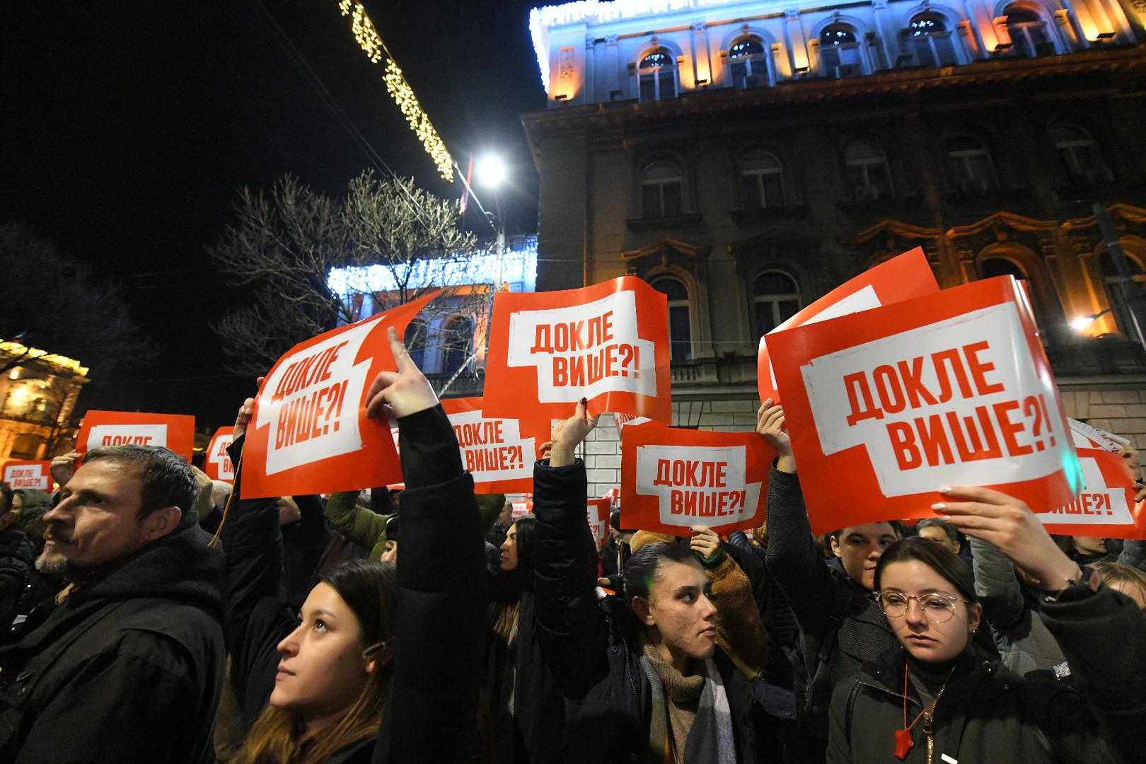 19, December, 2023, Belgrade - In front of the headquarters of the Republic Election Commission in Kralja Milan Street, a second day protest organized by the coalition "Serbia against violence" is underway due to the "stealing of the citizens' electoral will". . Photo: M. M./ATAImages.