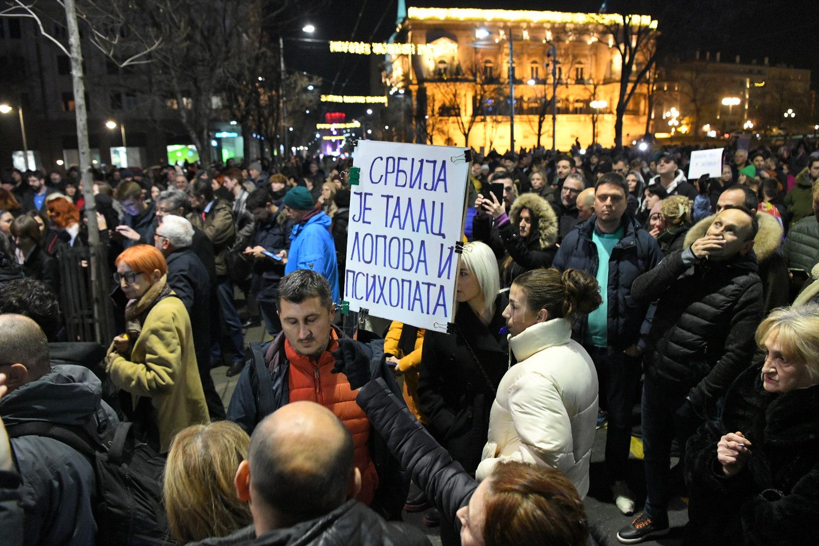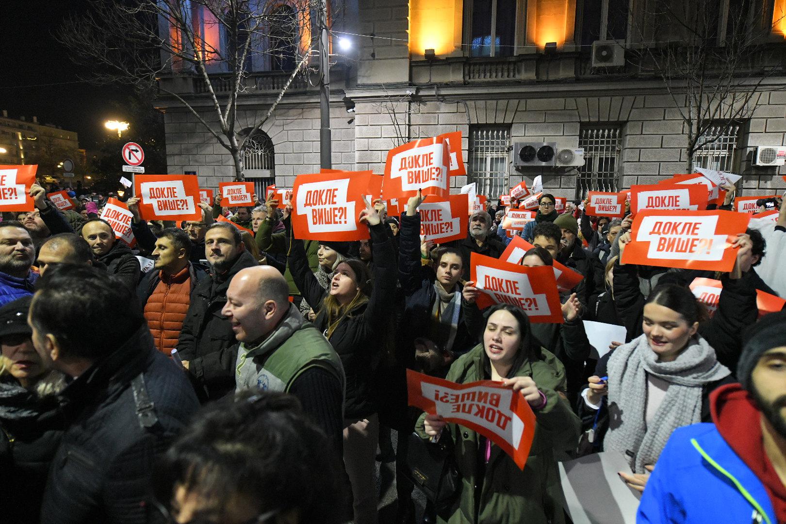 19, decembar, 2023, Beograd - Ispred sedista Republicke izborne komisije u Ulici kralja Milana u toku je drugi dan protesta koji je organizovala koalicija "Srbija protiv nasilja" zbog "kradje izborne volje gradjana". . . Photo: M. M./ATAImages. Photo: M. M./ATAImages/PIXSELL