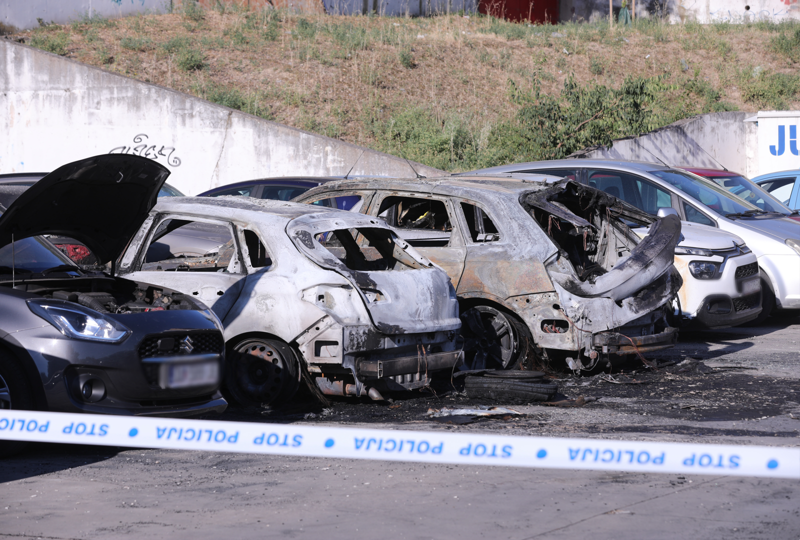 15.07.2924.,Split - Jutros oko 00,30 sati u Tijardovicevoj ulici na parkiralistu došlo je do izbijanja pozara u kojem su izgorjela dva osoba vozila. Prema prvim informacijama osteceno je još sedam vozila. Mjesto dogadaja je osigurano i obavit ce se ocevid Photo: Ivo Cagalj/PIXSELL
