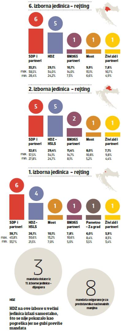 >> Lika i Dalmacija HDZ-u, zapad Zagreba SDP-u: U najjačoj utvrdi HDZ-u dva mandata 'vise' zbog Mosta