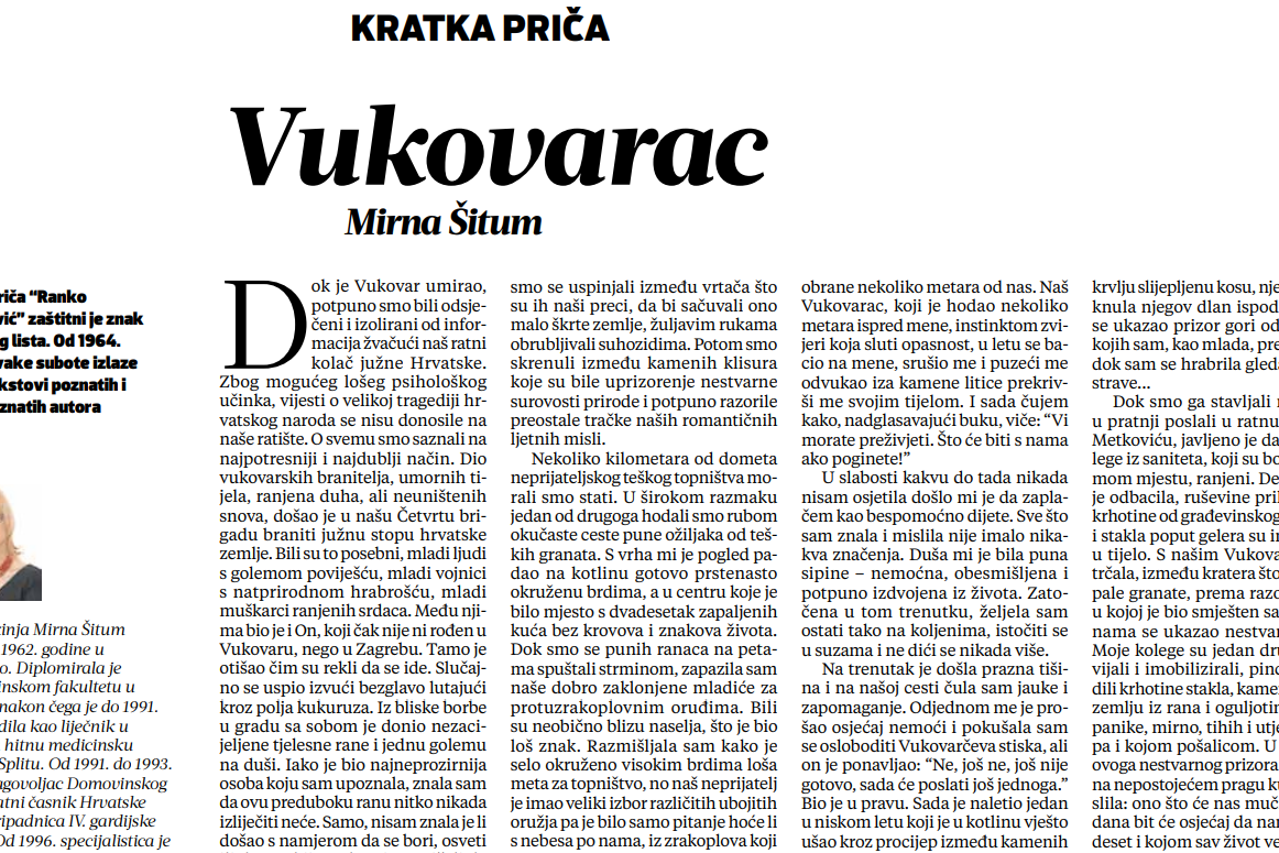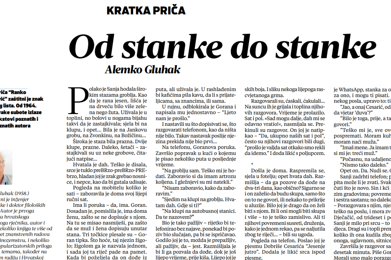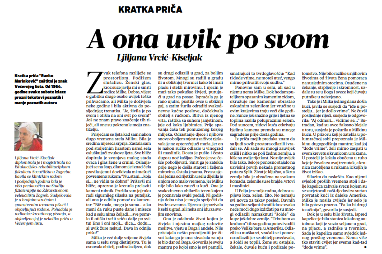 Kratka priča “Ranko Marinković” zaštitni je znak Večernjeg lista. Od 1964. godine svake subote izlaze prozni tekstovi poznatih i manje poznatih autora, ona je dio povijesti književnosti naše zemlje.