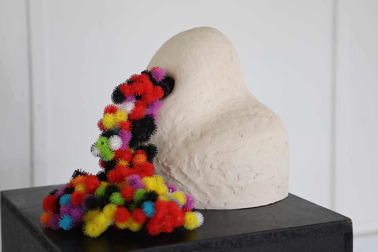 Hana Lukas Midžić, na katu, izlaže “Mamine mumije”, dokazujući da materijal kipara može biti doslovno sve kao i to da je za nju rad velika igra. Baš kao što se dijete igra igračkama, ona se igra svojim skulpturama, mijenjajući ih na način da joj budu i radost i utjeha. To je, kako sama kaže, “hrabro ogoljen život”.