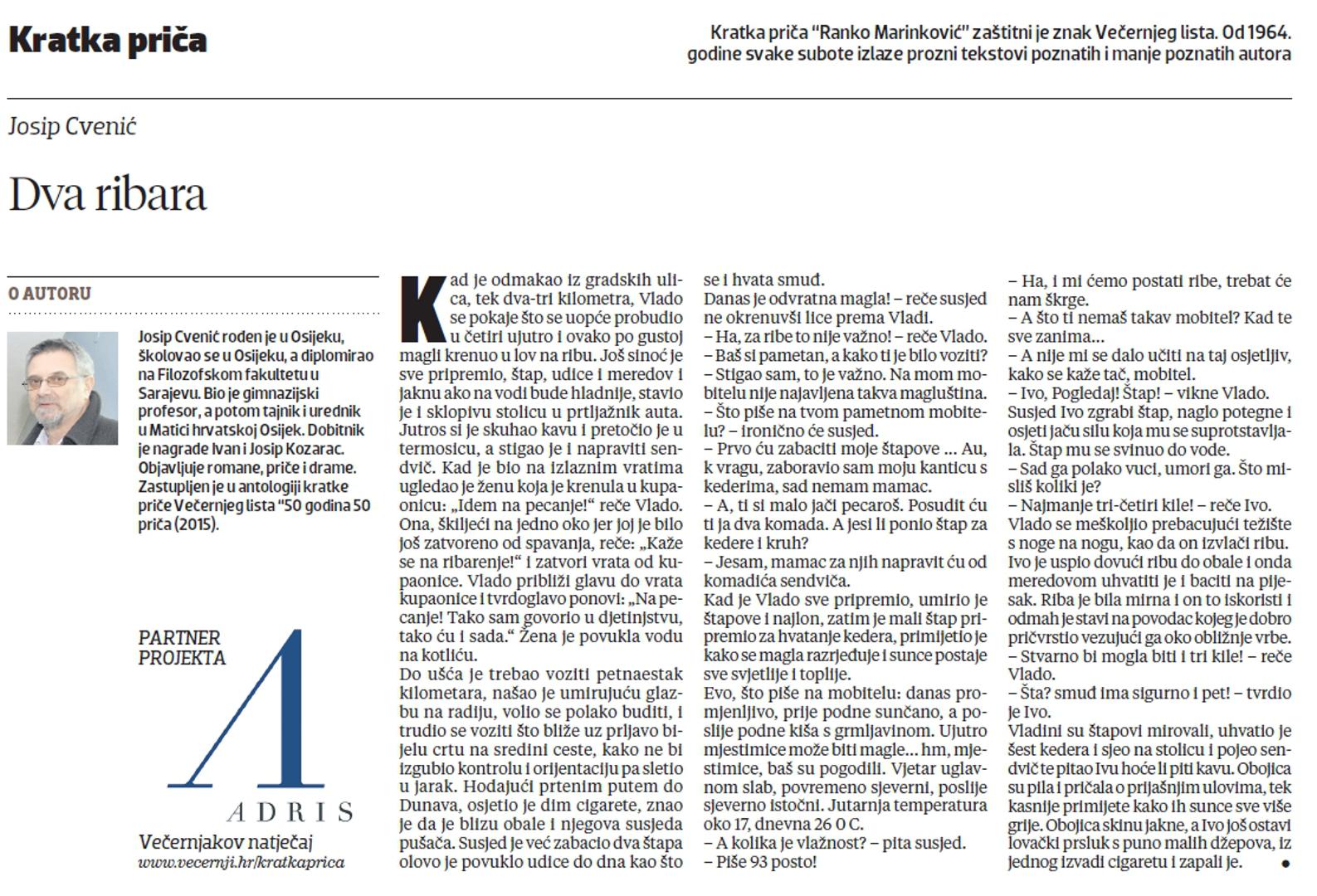 neumorni književni kroničar Opraštamo se od Tomislava Sabljaka, utemeljitelja Večernjakova natječaja Ranko Marinković, čiji je selektor i dobri duh ostao do smrti