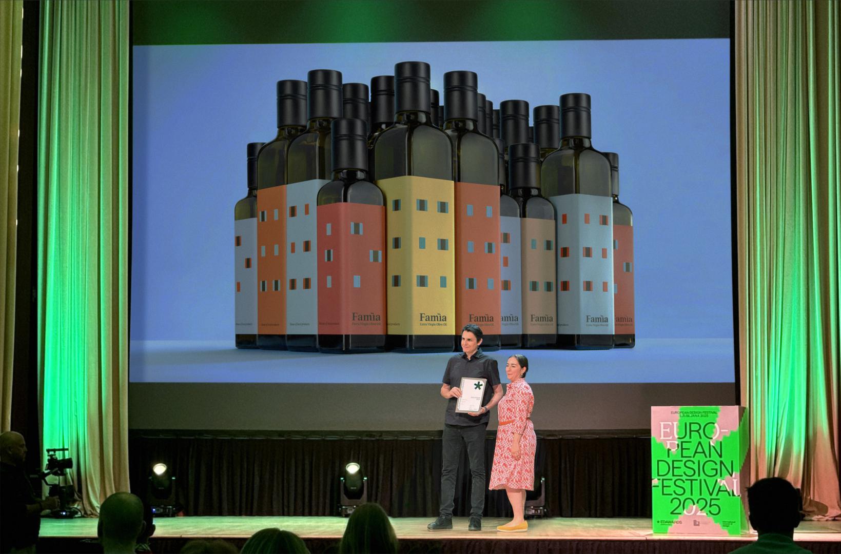 Projekt Famìa, dobitnik srebrne nagrade, kreiran je za liniju ekstra djevičanskih maslinovih ulja iz Rovinja, u suradnji s Etikgrafom, a njegov dizajn ujedno slavi i promovira ovaj grad. Naime, dizajn boce inspiriran je arhitekturom Rovinja — grada koji se razvio na poluotoku, s kućama raznolikih boja i veličina, zbijenima uz morsku obalu, što odražava raznolikost obitelji koje ondje žive. Etikete različitih boja označavaju intenzitet ulja, dok kombinacija boca stvara vizualnu kompoziciju nalik mediteranskom gradiću. Osim što uljepšava prodajni prostor, dizajn potiče kupce da prikupe sve intenzitete okusa, stvarajući vlastitu kolekciju i odnoseći kući autentičan dio Rovinja.