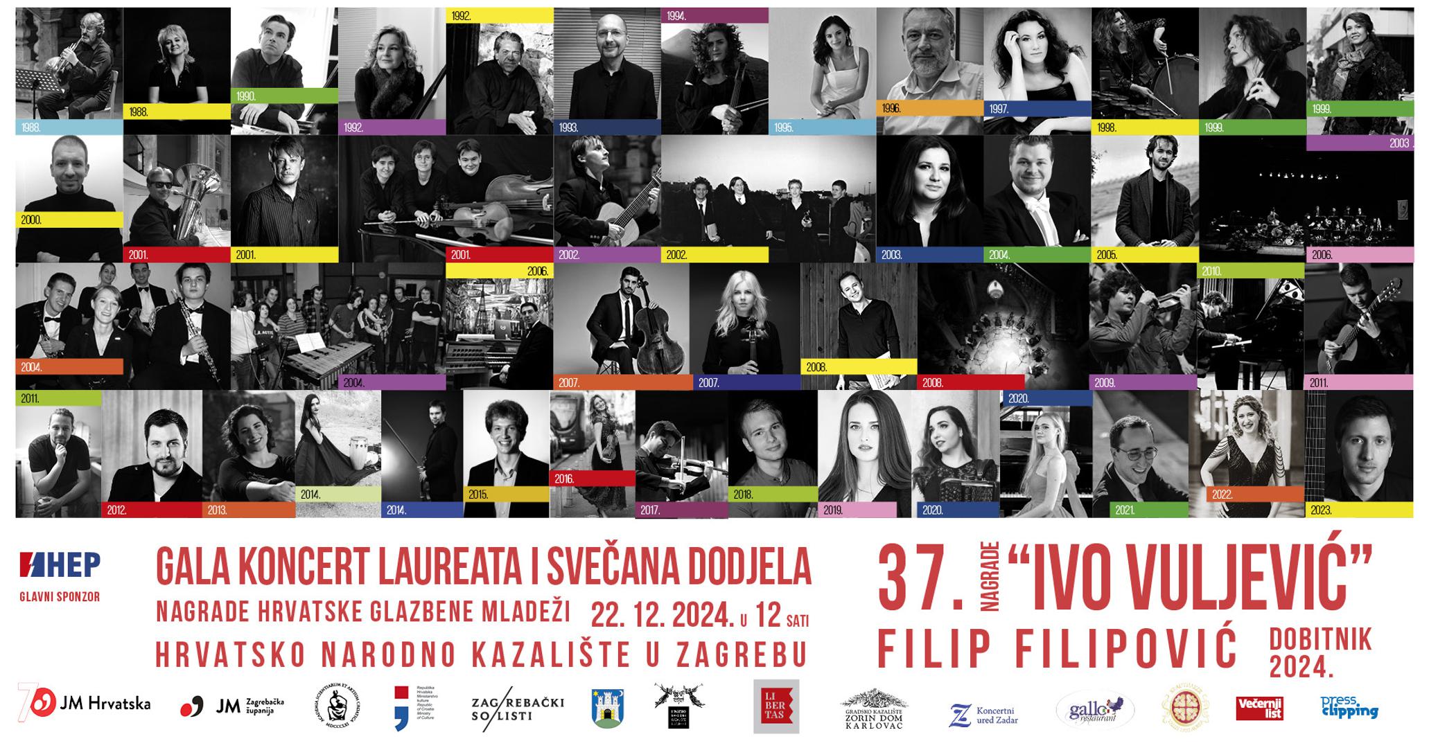 Ovu nedjelju, 22. prosinca u 12 sati u Foyeru Hrvatskog narodnog kazališta održat će se svečana dodjela 37. po redu nagrade Hrvatske glazbene mladeži - „Ivo Vuljević“ za najboljeg mladog glazbenika koja je ove godine pripala tenoru Filipu Filipoviću! Nagradu će mu uručiti predsjednik HGM-a, maestro Tonči Bilić, a nakon uručenja održat će se i gala koncert laureata za 2024. godinu.