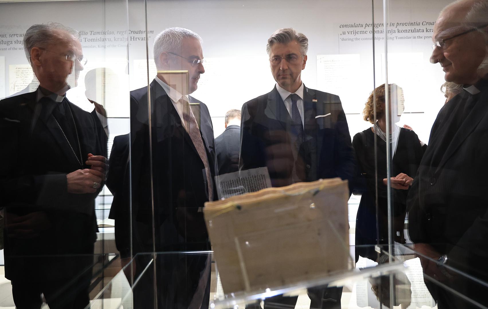 Između ostalog izloženi su i natpis sa sarkofaga kraljice Jelene, Bašćanska ploča, Ladislavov plašt, škrinja sv. Šimuna i rijetki primjerci povijesnih dokumenata poput Historia Salonitana, povijesnog djela splitskog povjesničara Tome Arhiđakona iz 13. stoljeća. Izložba ostaje otvorena do 15. veljače 2026. godine.