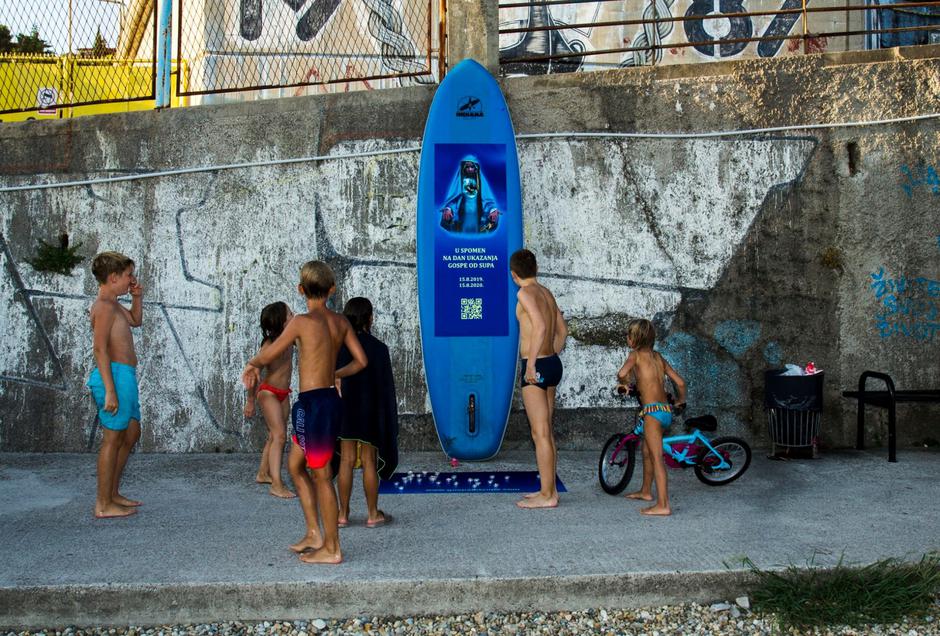 Na riječkoj Kantridi po drugi put nakon 2019. godine okupljenima se na blagdan Velike Gospe ukazala – Gospa od SUP-a. Tom čudu, ukazanju Majke Božje koja je među kupače doplovila na SUP-u i uputila im važnu poruku, prethodila je velika kolektivna molitva na koju je Riječane pozvala umjetnica i performerica, naša sugovornica Tajči Čekada.