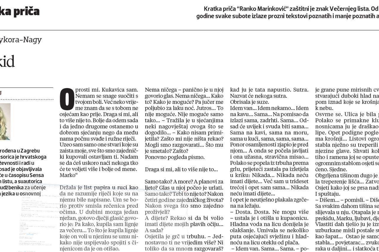 Nađoše je poluživu, neprisebnu, prepunu modrica i golu, s čarapama, na dnu drvenog stepeništa, iza vrata sklupčanu, slomljenu, poput raščerečene ovce ili koze s kamenjara, polumrtvu – i ne bi susjedima jasno što se to zbude i kakvu cijenu plati svojoj nestašnoj, izazivajućoj naravi, i što joj taj susret trebaše, za kakav bestijalni okršaj, s kakvom svrhom.