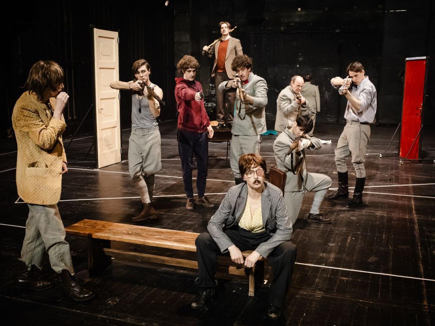 Kako u ZKM-u još nije radio redatelj koji nije svim mogućim komplimentima zasuo glumce ovoga kazališta, zanimljiv je komentar koji je u knjižici predstave zapisao dramaturg Goran Injac: "Na sceni ZKM-a zapravo nastaje kazališni stroj. Čine ga glumački ansambl predstave i Krležin tekst..." Pogodio je točnu u sridu jer ovdje svi doista tvore jedinstvenu glumačku matricu koja ne bi postojala da se iz nje izvuče i jedan njen sudionik. Oni su: Luka Knez, Rakan Rushaidat, Dado Ćosić, Adrian Pezdirc, Pjer Meničanin, Toma Medvešek (sve sigurniji i ravnopravniji sudionik tog ZKM-ovskog stroja), Ivan Pašalić, Katarina Bistrović Darvaš, Mia Melcher (odlična i kao starica koju treba objesiti i kao Ksaverova žena), Dora Polić Vitez, Ugo Korani (posebno kao glavni negativac "Golgote"), Anđela Ramljak i Petra Svrtan (snažno prisutna kao svojevrsni vodič kroz tkivo predstave).