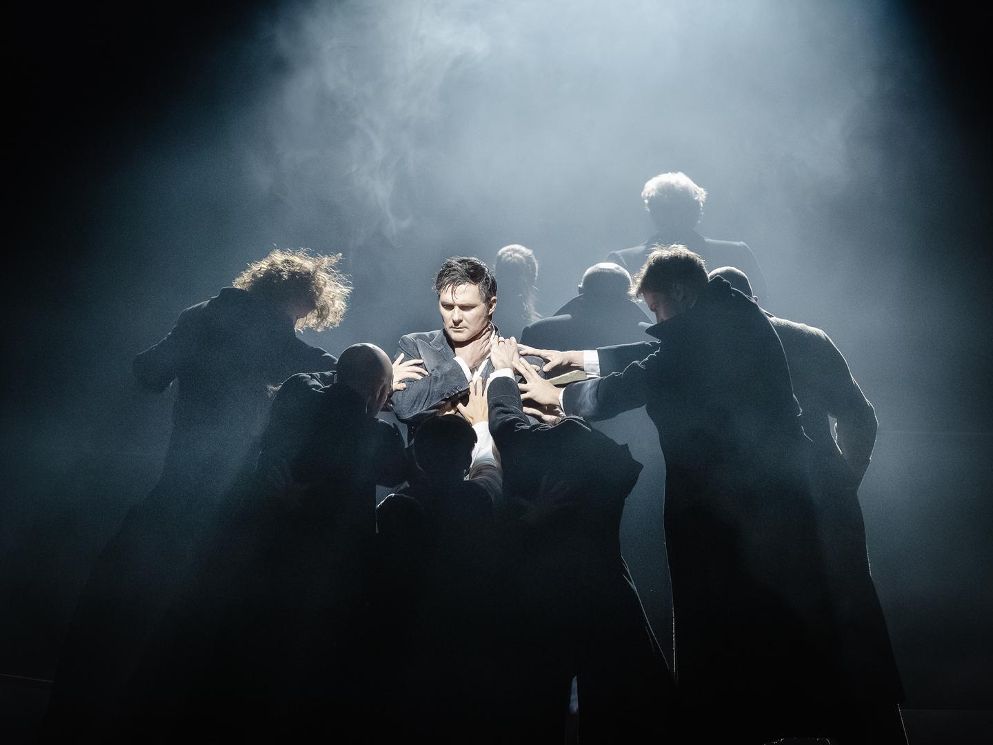 Ansambl predstave, koji čine Livio Badurina, Nina Violić, Jadranka Đokić, Goran Grgić i Marin Klišmanić, kao i plesači Michele Pastorini, Valentin Chou, Maria Matarranz de las Heras te glazbenici Lucija Stanojević (violina), Božan Bejo (klarinet), Helena Novosel (vokal), izvrstan je, a glavnog protagonista, Kamila Emeričkog mlađeg, utjelovio je sjajni Živko Anočić, koji je prošle godine postao član ansambla Drame zagrebačkog HNK. U povodu premijerne izvedbe “Zastava”, koja je zagrebačku publiku ostavila bez daha, Živko Anočić otkrio nam je nešto više o samoj radnji predstave, unutarnjim borbama s kojima se Kamilo suočava te sličnosti današnjeg svijeta i svijeta o kojem Krleža piše u svom romanu, ali i o kultnoj predstavi “Kauboji”, dugogodišnjem hitu Teatra Exit koji je na scenu postavio pokojni Saša Anočić, zatim o suradnji s našim poznatim redateljem Lukasom Nolom te o serijalu “Dnevnik velikog Perice”, koji će uskoro dobiti i svoju treću, posljednju sezonu.