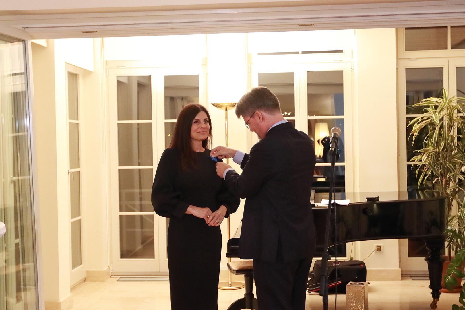 Svečana ceremonija u rezidenciji francuskog veleposlanika prilikom dodjele ordena kojim ju je odlikovao francuski predsjednik Emmanuel Macron za posebne zasluge u promicanju francuske kulture i umjetnosti izvan granica Francuske