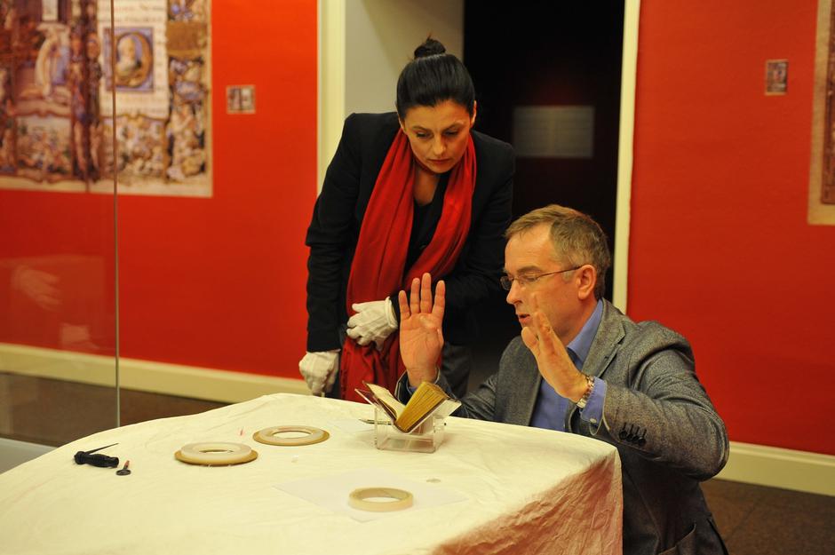 S kolegom kustosom iz The British Museuma na izložbi Julija Klovića u Klovićevim dvorima 2012.