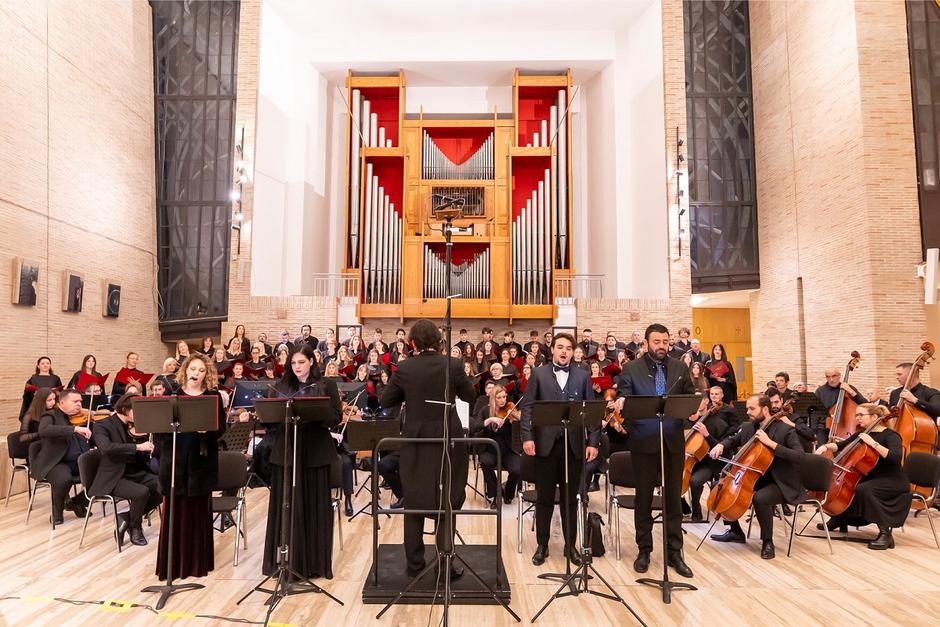 Orkestar i zbor okupljaju profesore, učenike i vanjske suradnike škole, potvrđujući njezinu snažnu pedagošku i umjetničku sinergiju. Na oba koncerta nastupaju solisti: Lucija Jelušić Šimatović (sopran), Dora Jana Klarić (alt), Lovre Gujinović (tenor) i Božo Župić (bas). Koncertima ravna maestro Veton Marevci, dok je zborovođa Ljubica Vuletić Marjanović.