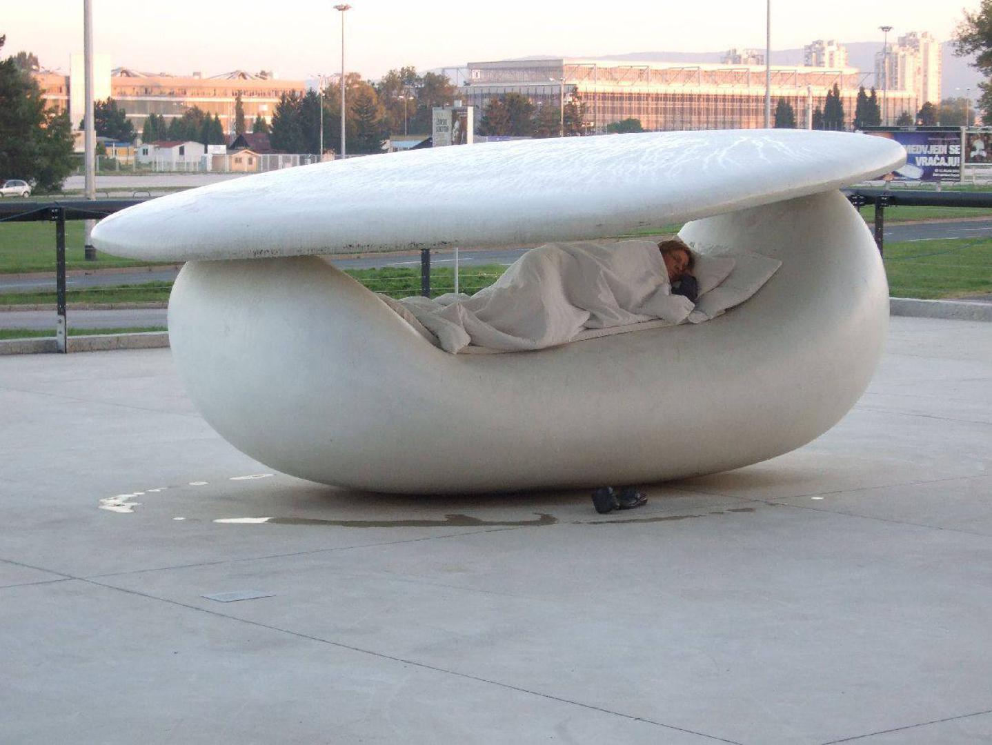 Na taj rad ponukalo me Kožarićevo objašnjenje skulpture "Oblik prostora XIII", u kojem navodi da je riječ o odnosu dva prostora koja nas omeđuju, neba i zemlje. Razgovarala sam s Kožarićem i on je dopustio intervenciju, kao što je uvijek i dopuštao umjetnicima da interveniraju u njegove radove. Tako je nastao taj performans "Spavanje između neba i zemlje", u kojem sam provela noć u "Obliku prostora". To je bio neponovljiv doživljaj. U nekoliko sam se navrata kao umjetnica osjećala privilegirano, imala sam osjećaj da mogu iskusiti nešto što inače ne bih, a jedna od takvih situacija bilo je i spavanje u Kožarićevoj skulpturi.