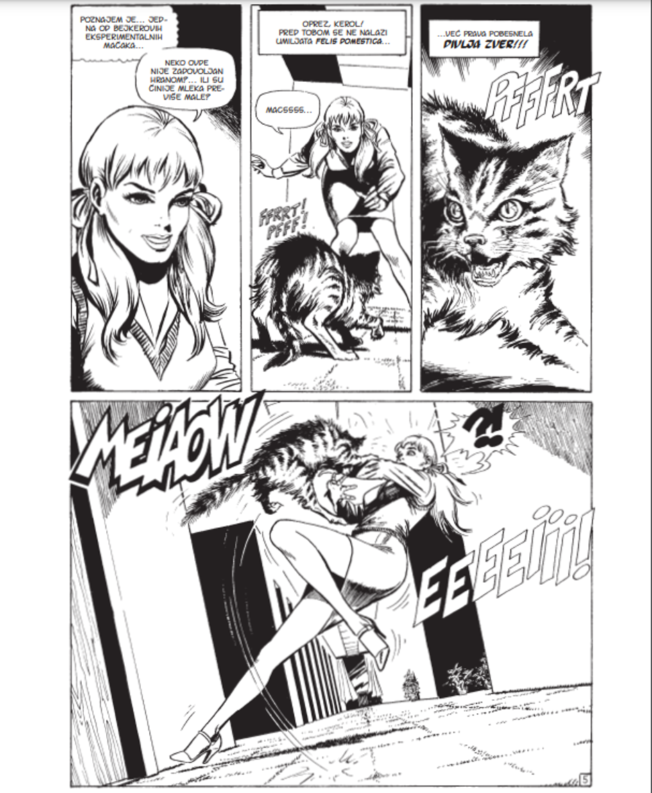 A ono što je iznenađujuće jest koliko su te pustolovine danas, četrdesetak godina nakon što su napisane, i dalje svježe i pitke. Ne samo da nisu izgubile nimalo od svog izvornog šarma, nego bih se usudio ustvrditi da su ga možda čak s vremenom još i dobile. Ključ je, naravno, u Banetovom otkačenom smislu za humor koji u kontrapunktu sa smrtno ozbiljnim, dramatičnim scenama, rezultira konstantnim cerekom, ako već ne gromoglasnim smijehom. Mislim, kako da čitatelj ozbiljno shvati scene borbe kad autor ubaci onomatopeje kao što su Šljaf! Žvajz! Promaš-ing! Tjoraaak! Dumuoko! Raspizd!? Kad smo dogovarali ovo izdanje, Bane je pristojno ponudio opciju da Fibra „prevede“ strip na hrvatski, što sam ja, naravno, kategorički odbio. Cat Claw, iliti Ket Klou, kako god da vam je draže, napisana je laloškim srpsko-hrvatskim (ili, kako to Bane voli podbadati svoje lokalne nacionaliste, vojvođanskim jezikom) i velik dio gore spomenutog Katinog šarma leži upravo u tom lokalnom koloritu. Dio Fibrine publike nije bio baš oduševljen ovim mojim izborom, ali ja i dalje čvrsto vjerujem da sam donio pravu odluku. Mislim, zamislite na primjer da netko sinkronizira/prevede Velo misto ili Gruntovčane na srpski. Na što bi to sličilo?