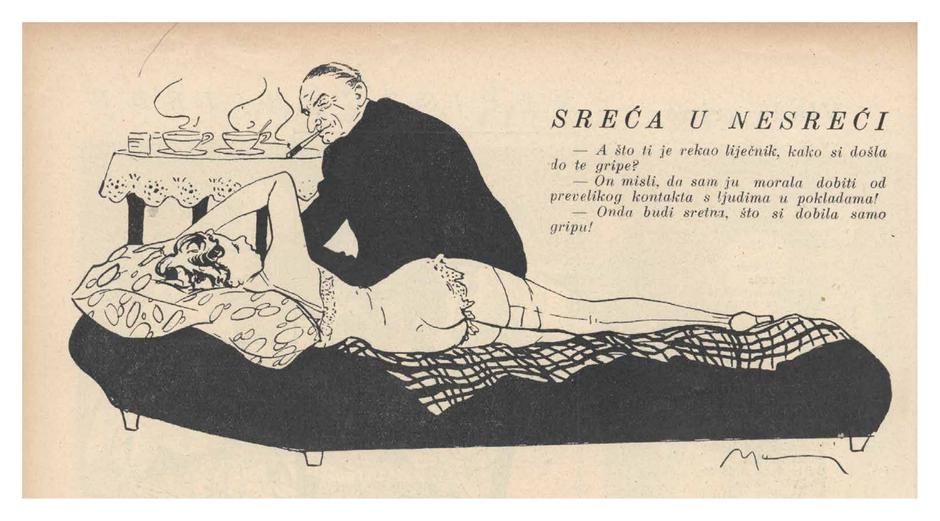– Zadnja cjelina tiče se erotike i erotskih karikatura koje je radio za časopise, a izložen je i diptih koji pripada slikarstvu iz njegove zadnje faze života kada slika gole figure u smaku svijeta jer smatrao je da civilizacija ide k vragu pri čemu je vjerojatno bio i u pravu. Taj dio izložbe odvojen je crnim zastorom i u tom manjem prostoru izloženi su i pornografski stripovi – kaže Dulibić te na pitanje je li istinita tvrdnja da je Maurović često bio i akter svojih erotskih radova, odgovara: