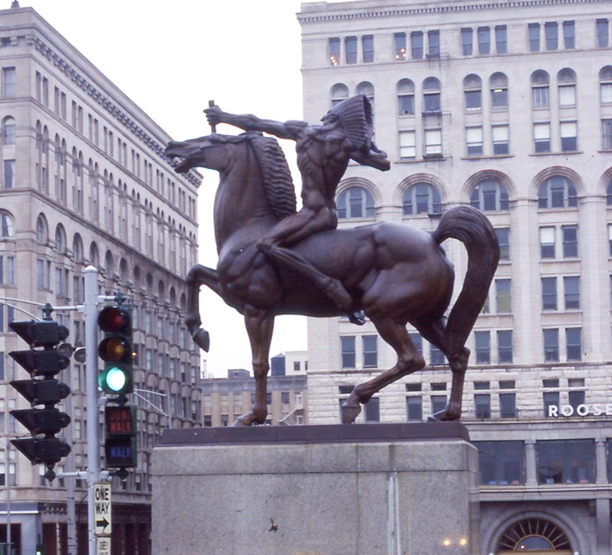 Najmarkantnija figura suvremene klasike u hrvatskom kiparstvu postavljena izvan Hrvatske svakako je The Indian autora Ivana Meštrovića, gordo postavljen među čikaške moćne građevine. Mišićna napetost konja i njegova jahača legendarna je i pamtljiva u svim generacijama! Danas gordo i govorimo o njoj kao o dijelu hrvatske umjetnosti, iako nam ono formalno ne pripada.