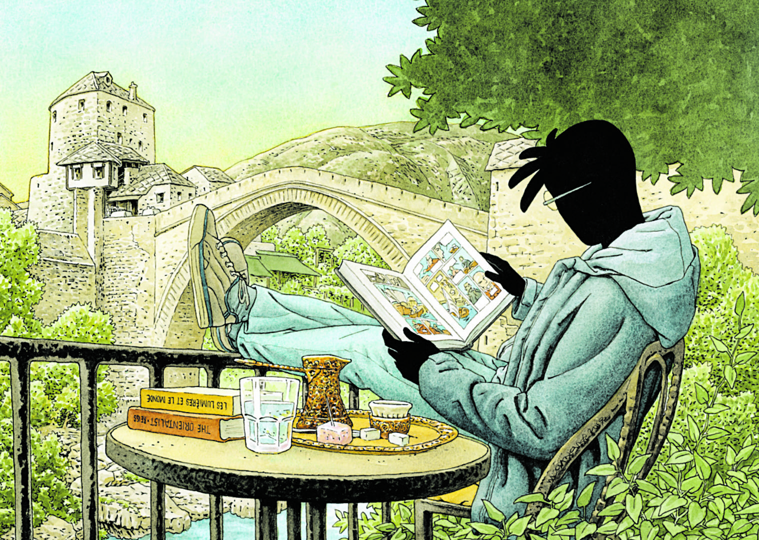 Dolinom Neretve jutrom odzvanja Zagorov urlik, ispred hrvatskog doma Hercega Stjepana Kosače na konjima s Winchester puškama u bisagama projahaše Tex Willer i njegov vjerni suputnik Kit Carson. Mister No je svojim Piperom sletio u mostarsku zračnu luku i iskrcao važne goste, profesora Martina Mysterea i njegova pomoćnika Javu. Ispod starog Mosta zavaljen u fotelju od trske Dilan Dog zagledan u rijeku na klarinetu izvodu “Đavolji triler”. Pod okriljem noći sa zgrade “mostarke” Batman promatra odsjaj svoga znaka iznad brda Hum, dok Spiderman sa svojim mrežama leti između zgrada u naselju “Centar II”...