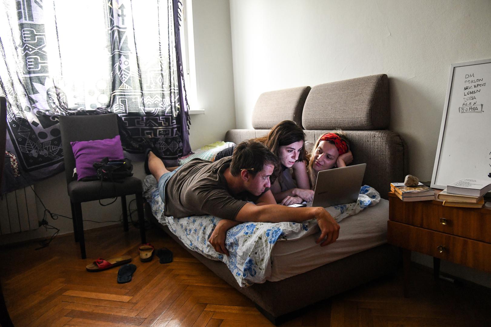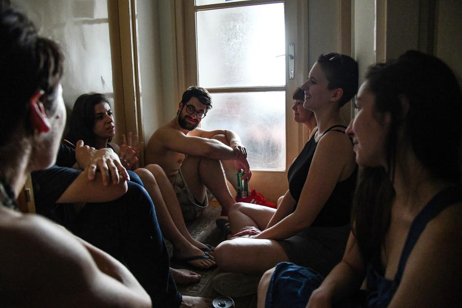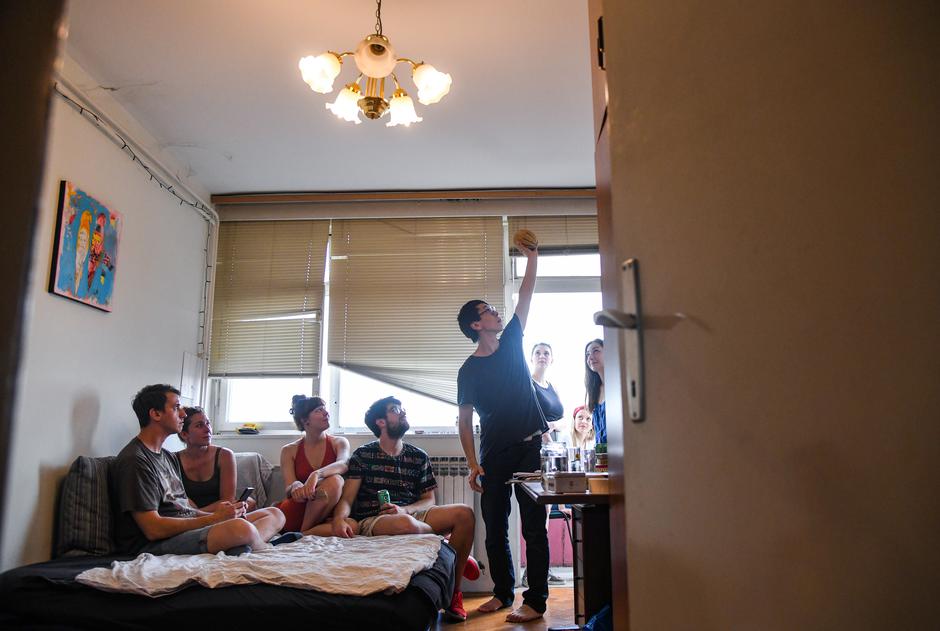 Vedrana je bila iduća na redu – sve nas je nekako uspjela ugurati u minijaturni hodnik između moje i cimeričine sobe, gdje smo sjedili na podu, u gotovo potpunom mraku i objasnila nam da će sada izvesti komad koji je napisala sa samo 11 godina, kada je živjela u skučenom stančiću od 30 kvadrata u Kutini gdje je taj komad i praizveden. Pustila je glazbu s malog bluetooth zvučnika i pozvala dvoje volontera da joj se pridruže u drugoj sobi. Uskoro smo sa zvučnika začuli njihove glasove. Vedrana je bila pripovjedačica, dok su moji prijatelji Josipa i Ivan postali glavni glumci čitajući (prilično dobro, moram priznati) priču o ljubavi, kriminalu i smrti u noir-verziji New Yorka koju je Vedrana izmaštala u djetinjstvu. Michi nas je zatim iznenadio još jednom izvedbom, čitajući tihim i odmjerenim glasom svoju pjesmu “Some people” dok je vani počinjao pravi pravcati prolom oblaka, napokon nam donoseći olakšanje.