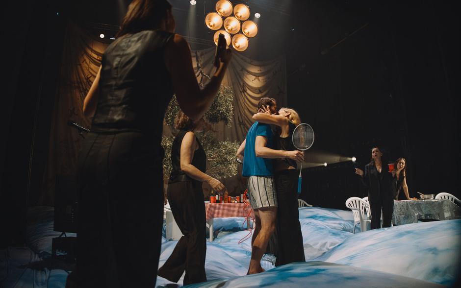 – Ovu je komediju, u pravom ritmu i tonu, po prijevodu Vande Mikšić i u dramatizaciji Dore Delbianco, režirala Saša Broz. S prvom je odlučila biti krajnje jednostavna, a dobar tekst koji joj se našao u rukama dala je u ruke pravim glumcima. Jedini "ispad" je scena obračuna koju je režirala efektom "slow motiona", čime je odala počast nekim starim francuskim filmskim komedijama koje s ovim suvremenim djelom dijele mudrost utkanu u pozadinu komičnih situacija. Scenografkinja Sara Haas priču je postavila u sasvim bezličan građanski salon, koji može biti i sada i tada, a koji je posve nepotrebno ukrašen slikom svih aktera priče (također djelo scenografkinje). Kostimi Mije Popovske također su na granici bezličnosti, ali sve to ne umanjuje dojam same predstave u kojoj briljiraju glumci.