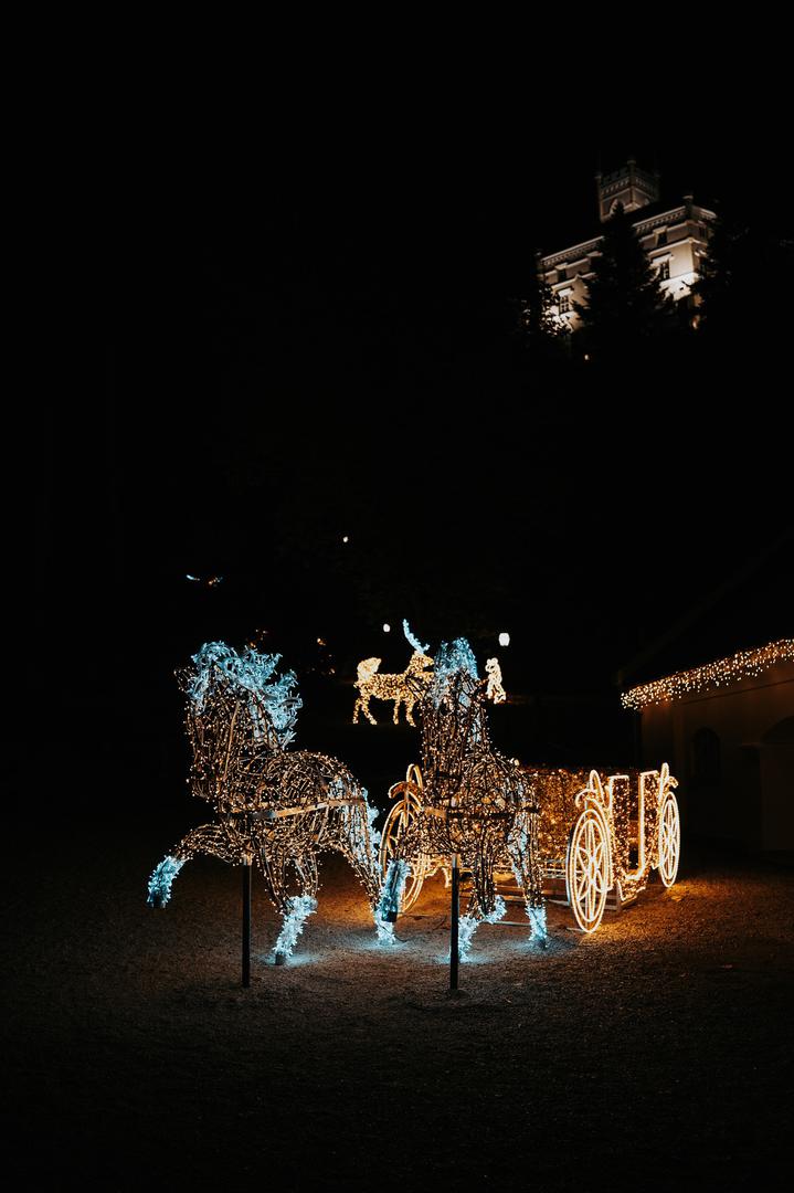 Uz raskošne kočije, šumska bića, glazbene instrumente i mitskog zmaja Trakošćana posjetitelji će moći prošetati kroz svjetlosne skulpture inspirirane bogatom poviješću i stalnim postavom dvorca – od lovstva i viteštva do glazbe i plemićkih portreta. Od monumentalnih portala i dvorskih tunela do svjetlosnih scena koje prikazuju plemićke grofove i grofice, instalacije stvaraju atmosferu u kojoj posjetitelj postaju dijelom priče, hodajući kroz svjetlosnu bajku vežu se s prošlošću i legendama koje dvorac čuva.