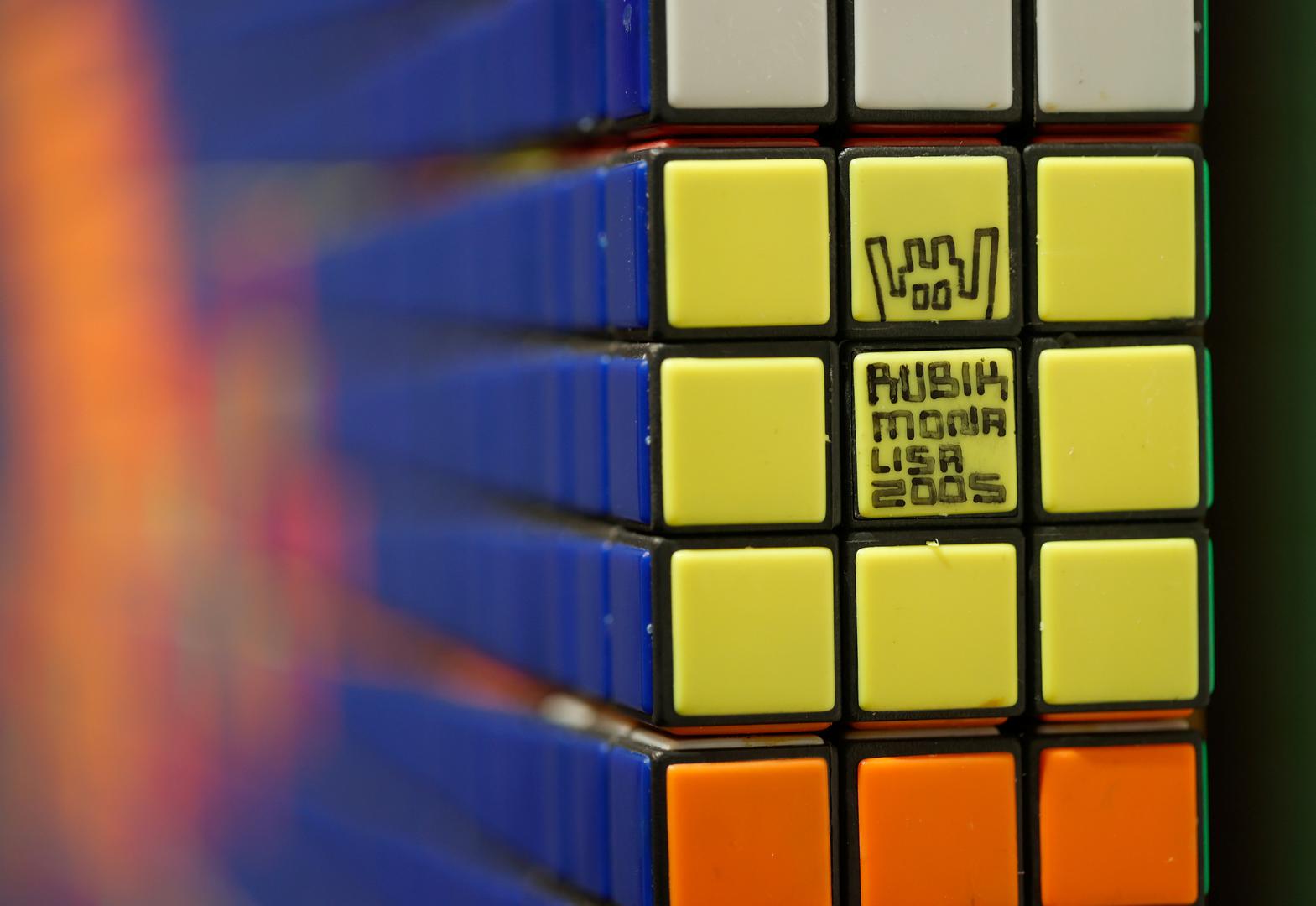 Umjetnik je mozaik Mona Lise i njenog slavnog osmjeha napravio koristeći plastične kockice koje čine Rubikovu kocku, mehaničku slagalicu u kojoj je potrebno po bojama uskladiti stranice kocke koje čine po devet pomičnih polja jarkih osnovnih boja.
