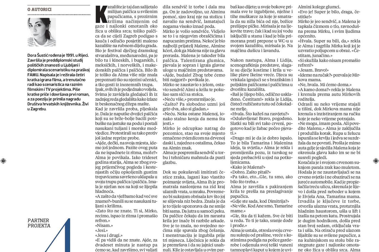 Doviknula je ocu pozdrav. Nije se ni pomaknuo. Pitala se je li je čuo, a onda je zaključila da je zapravo svejedno. Čim je izašla, zažalila je. Zažalila je sve svoje riječi, svaku rečenicu koju je izgovorila otkako je kročila kroz njihova vrata. Došlo joj je da se vrati natrag i ispriča, ali ipak je odustala. Kao i svakog puta, zakopčala je jaknu i nastavila dalje osjećajući se kao da su joj se magneti s majčina hladnjaka zalijepili za želudac. Kući ju je dočekao nered. Mačka je razbacala pijesak posvuda oko svoje kutije. Vesna opsuje sebi u bradu, a onda dohvati metlu, još obučena.