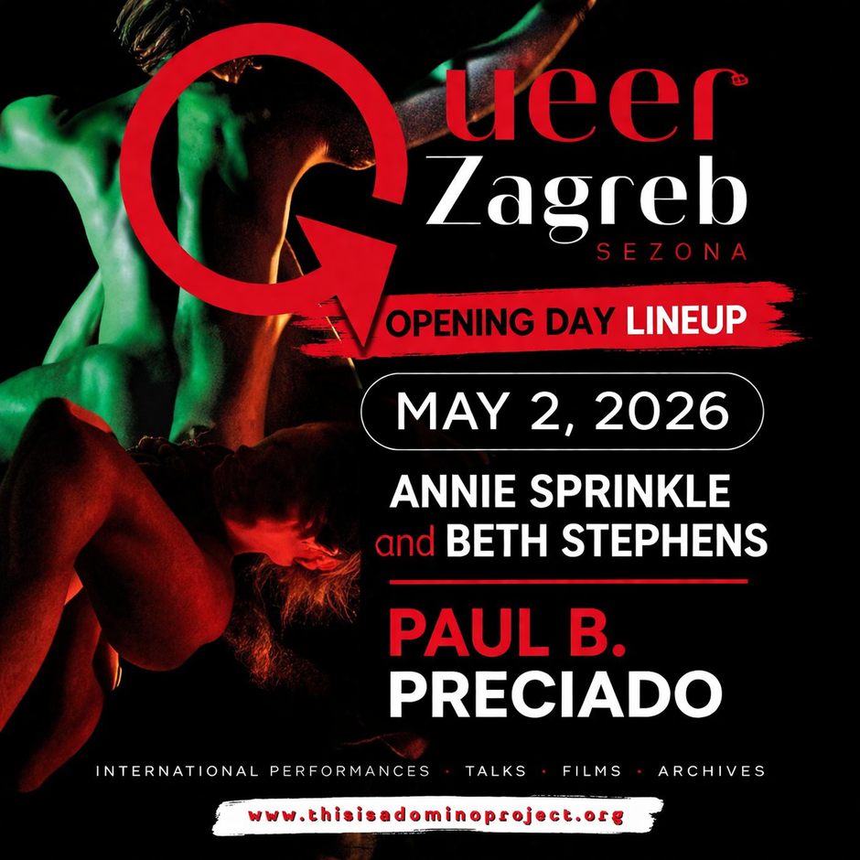 Već sam početak Sezone donosi radikalnu poslasticu. U subotu, 2. svibnja, točno u podne, u prostorijama Kulturno-informativnog centra (KIC) predavanje će održati Paul B. Preciado, pisac, kustos, redatelj i jedan od vodećih mislilaca u području rodnih i seksualnih politika. Njegove knjige, među kojima su i „Manifest kontra-seksualnosti“, „Testo Junkie: seks, droge i biopolitika“ i „Pornotopija“, referentne su točke suvremenih queer, trans i nebinarnih kontrakultura. Naziv zagrebačkog predavanja je „43.000 million sexes“, a bavi se razumijevanjem suvremenog tehnofašizma u pohodu na trans i nebinarna tijela. Nakon predavanja predviđena je moderirana rasprava.