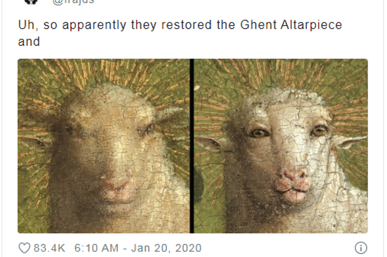 Jedna od najznačajnijih slika svijeta za koju se smatra da je prvo dijelo naslikano uljanim bojama - Gentski oltar, djelo slavne braće Huberta van Eycka i Jana van Eycka, resturirano je, ali je zbog novog izgleda pojedinih likova postalo viralni hit.