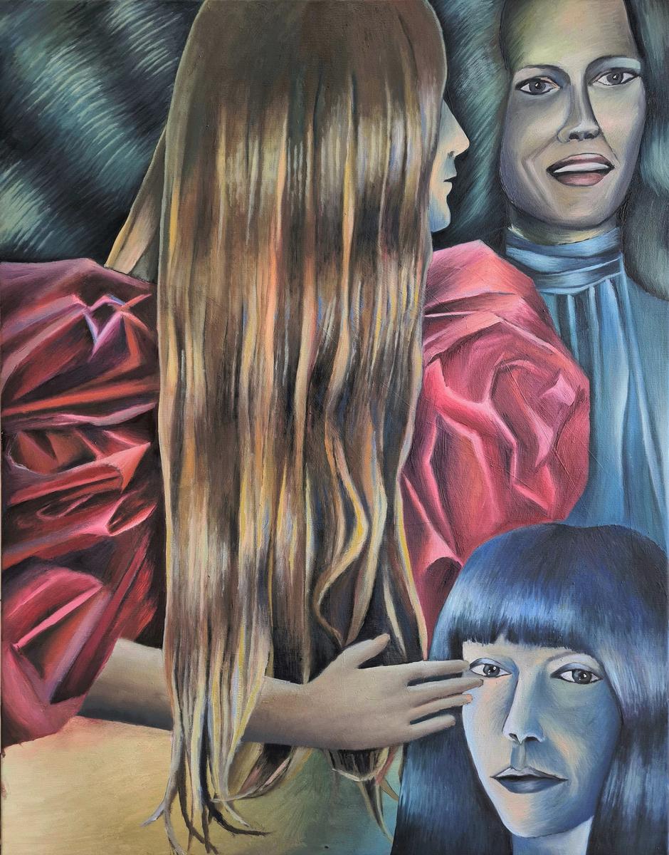 Jer tu se radi o “ženskom pogledu”. Tu bi se referirala na slikaricu Rosu Loy, koja tu temu naziva “womanhood”, odnosno referenciju na osobni odraz stvarnosti, unutrašnjih stanja i svijeta oko mene. Također, interesantna mi je tema kako živjeti s izvornom ženskom energijom u takozvanom “muškom svijetu”. Možda iz tog osjećaja ili tog stava proizlaze i prizori na mojim slikama.