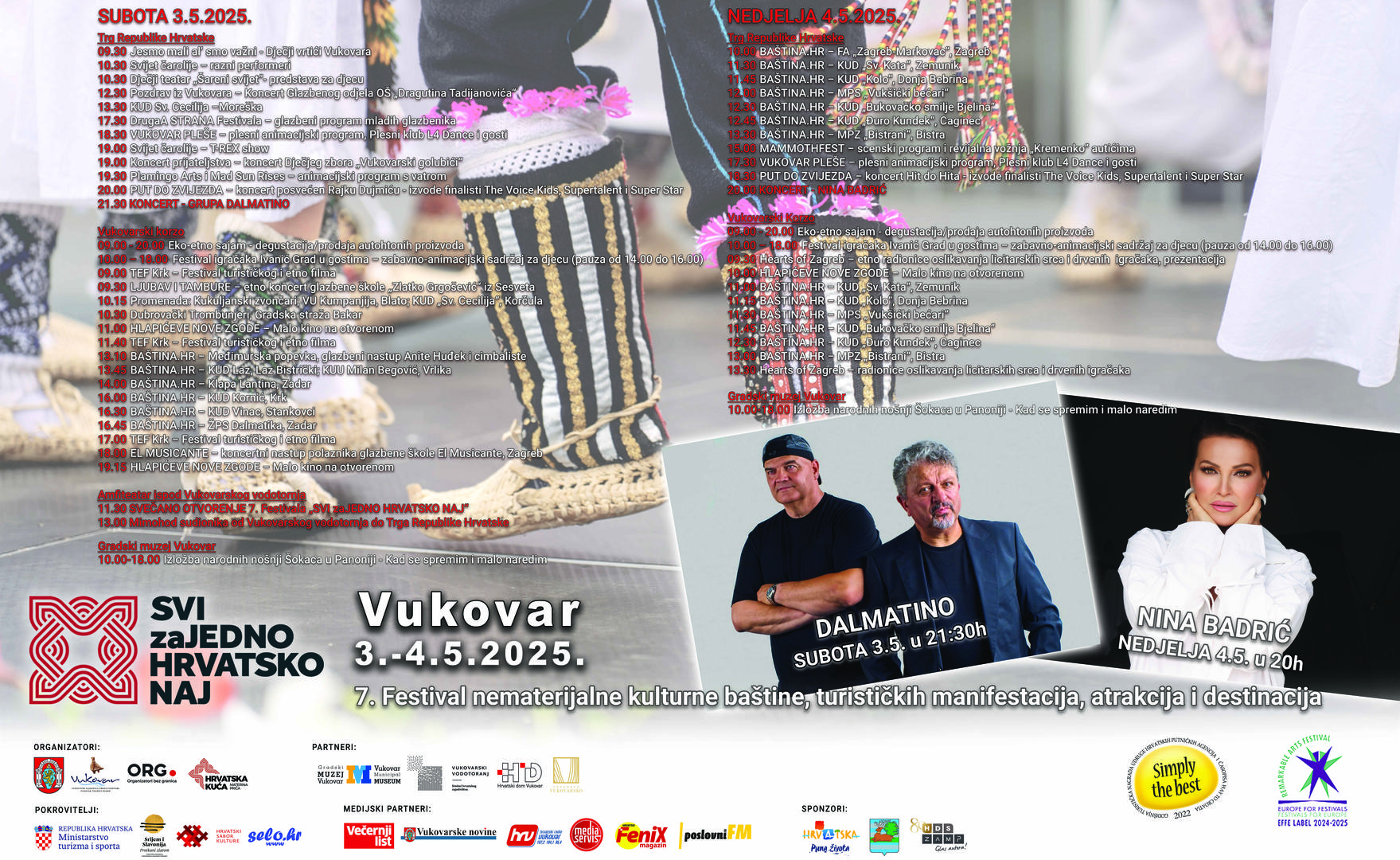 Do početka 7. izdanja „SVI zaJEDNO HRVATSKO NAJ" ostalo je još samo nekoliko dana, a sudeći po prošlogodišnjoj posjeti od 8 tisuća posjetitelja, ovogodišnji bi program mogao privući još više ljubitelja hrvatske nematerijalne baštine, folklora i tradicije, ali i ljubitelja sjajne glazbene zabave koji će u Vukovaru moći uživati u besplatnim koncertima i ostalim sadržajima. Kako je ovogodišnji festival posebno posvećen djeci i mladima, najmlađi posjetitelji će posebno doći na svoje uz mnogobrojne glazbene programe i radionice te u Festivalu igračaka koji u Vukovar stiže iz Ivanić-Grada.