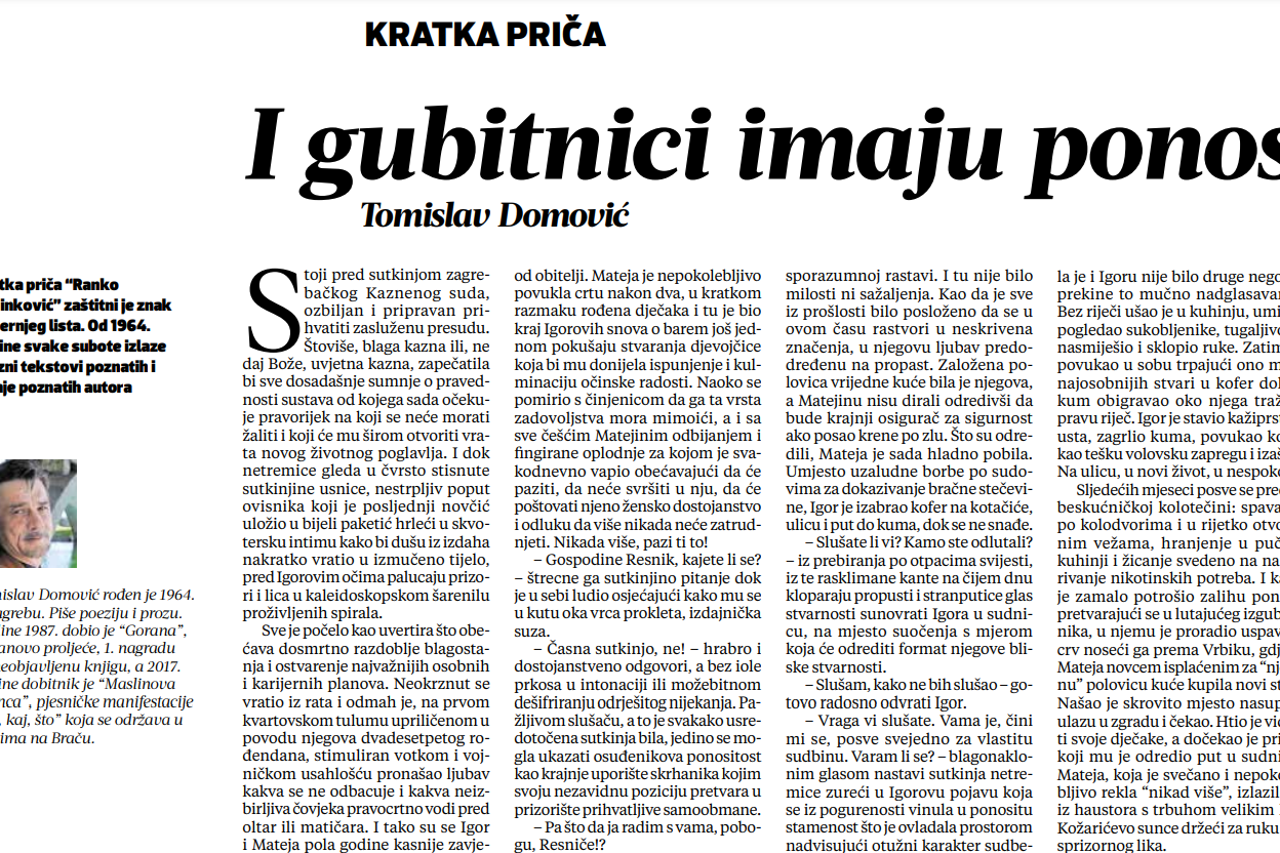 – Što vas dvoje ne bi snimili neku reklamu za mjesto, ono u stilu, ljetovanje kao nekad. Ma sigurno već imate sto ideja u glavi – nasmijao se glasno i iskapio čašu.