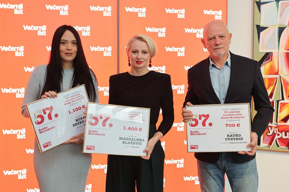 U zagrebačkoj galeriji Kranjčar jučer su svečano dodijeljene nagrade 57. natječaja Večernjeg lista za najbolju kratku priču koja nosi ime čuvenog hrvatskog pisca Ranka Marinkovića. Na natječaj koji je s godinama postao zaštitni znak Večernjeg lista ovog se puta prijavilo više od šest stotina različitih autora i autorica, a onih pedeset priča koje su u Večernjakovu subotnjem prilogu "Obzor" i objavljene, pomno je probrao selektor Tomislav Sabljak.
