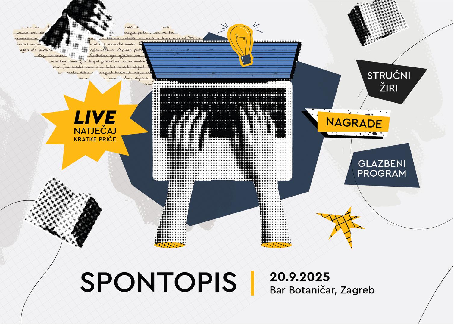Spontopis, prvi hrvatski live natječaj kratke priče, koji spaja pisanje u stvarnom vremenu s festivalskom atmosferom, održat će se 20. rujna u baru Botaničar, s početkom u 11 sati. Cilj mu je stvoriti inkluzivnu književnu zajednicu uz slavlje isključivo ljudskog stvaralaštva.