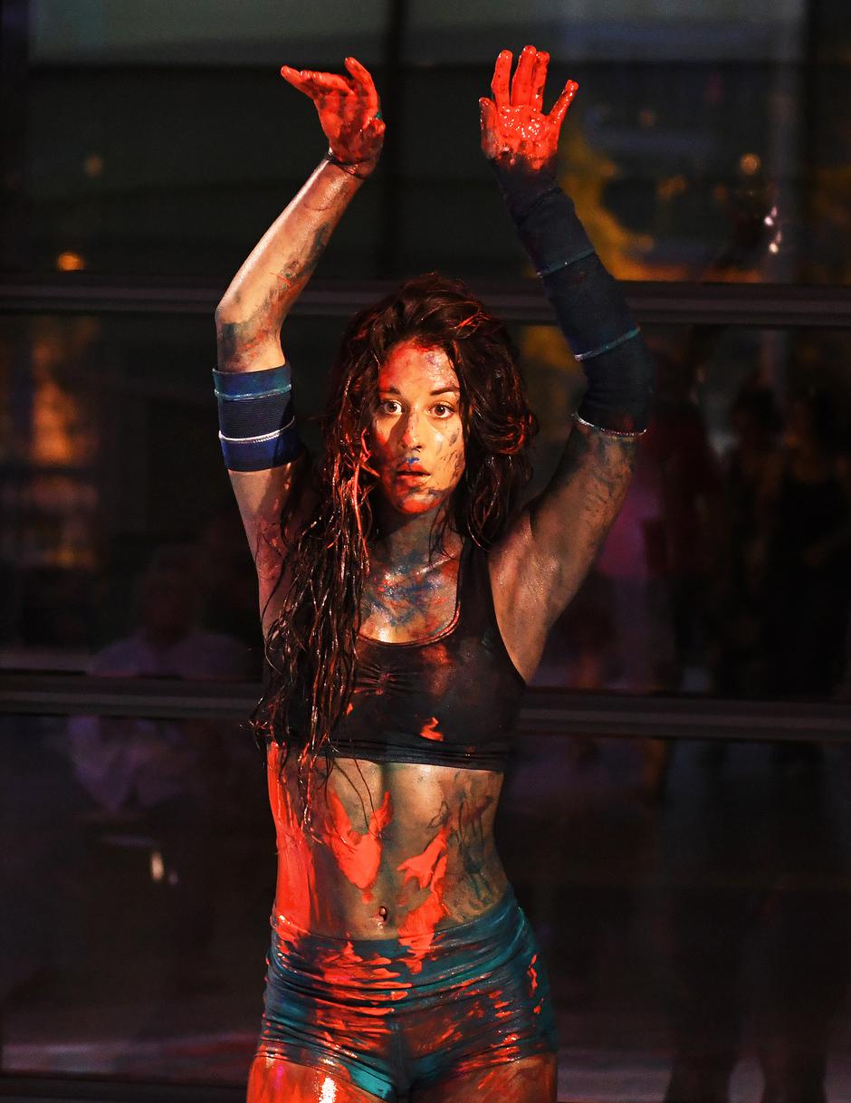 Performansom “Simultane metamorfoze” na platou MSU-a klasično školovana balerina, a danas suvremena plesačica Vanesa Imrović predočila je proces nastajanja likovnog rada simultanim plesanjem likovne inspiracije, faze i tijeka stvaranja.