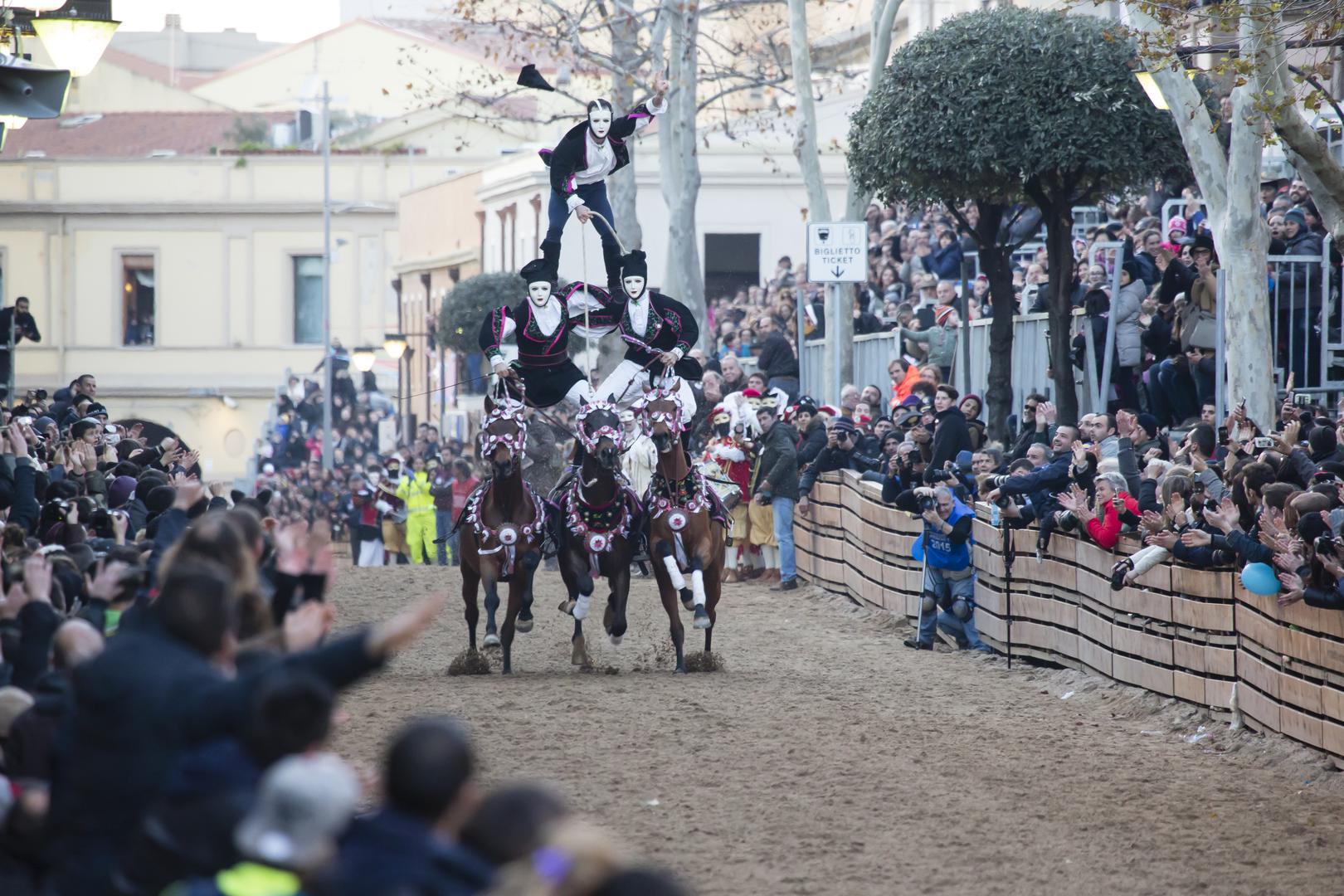 – Njih trojica u galopu jašu jedan uz drugoga i izvode razne figure na konjima, a iza njih odmah kreće druga skupina. Parigliu trče svi. To je nešto od čega zastaje dah, kada vidite njihovu vještinu jahanja. Jedna od najzahtjevnijih figura koja se može napraviti jest kada se sva trojica jahača podignu sa sedla svojih konja, srednji jahač okrene se naglavačke dok mu druga dvojica drže uzde. Imaju i drugu varijantu, kad je srednji jahač okrenut leđima, on ne vidi u kojem pravcu jaše, a dvojica njegovih sartiglianata drže uzde konja. Ipak, daleko najzahtjevnija točka koju mogu izvesti svega dvije ili tri skupine, kada se u galopu, u najvećoj brzini, srednji jahač popne na ramena konjanika sa strane, njih dvojica se također podignu na noge i zajedno naprave piramidu. Sva trojica su na nogama, srednji stoji na ramenima ostaloj dvojici, oni drže uzde njegova konja, sva trojica su u punom galopu, a onaj srednji, ako je iznimno vješt, zna skinuti jaknu i njome mahati. To je najvrednija figura koja se može napraviti, "u sridu", kako bismo u Sinju rekli. Kada svi istrče, završava Sartiglia. Pobjednika nema, pobjednici su svi koji su pogodili zvijezdu, a što se tiče pariglie, računa se brzina, vještina jahanja i figure koje se naprave. Sve se boduje. Jest natjecateljski, ali nije kao Sinjska alka gdje je jedan pobjednik. Sartiglia ima više sadržaja pa se drugačije i vrednuje – pojašnjava dr. Dukić.