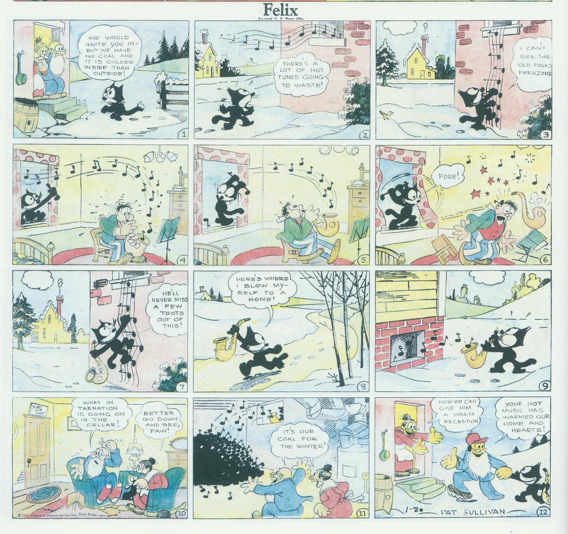 U SAD-u nastavlja se ekspanzija stripa i poslije Prvog svjetskog rata. Raspojasan strip gega i burleske kao što su bili "Buster Brown" i "Bim i Bum" imao je svoje sljedbenike. "Mačak Felix" Pata Sullivana, koji se 1920. godine pojavio kao junak crtanog filma, tri godine kasnije seli se u strip. Njegovi doživljaji i avanture tipični su primjer oživljenog crteža. Sullivan prenosi u kvadratiće stripa sva ona znakovna sredstva kojima se koristio u filmu, kojima se mačak izražavao u nijemom crtanom filmu: pilu koja reže kladu kao oznaku za spavanje; upaljenu žarulju kao simbol nailaska neke spasonosne ideje; »z-z-z« iznad usnule osobe; uskličnik ili upitnik kao znak čuđenja i zbunjenosti itd. Dakle, maksimalno, ali racionalno korištenje svih oblika slikovno-simboličkog izražavanja koje autoru može pružiti samo strip i crtani film.