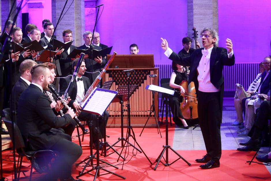 Sukladno prigodi proslave jubileja, odlično je bio odabran iznimno rijetko izvođeni “Te Deum”, jedno od genijalnih mladenačkih djela Felixa Mendelssohna. Nakon zanimljive kombinacije zbora s dva klarineta (Jaroslav Sadoviy i Rude Mimica), dva fagota (Vladimira Horvat Čolić i Aleksandar Čolić) i continuom u “Ave Mariji”, dvozborski “Te Deum” uzorno je izveo uži sastav zbora, podijeljen u dvije dvanaesteročlane skupine, uz odličnu podršku gostujućih glazbenika: continuo su činili violončelistica Lea Sušanj, kontrabasist Fran Petrač i orguljaš Pavao Mašić. No, pravi slobodni let jata lijepih glasova počeo je u skladbi “El hambo” suvremenog finskog skladatelja Jaakkoa Mäntyjärvija. Bilo je očito da je to jedna od skladbi u kojima se zbor i njihov dirigent odavno dobro poznaju, komuniciraju i zabavljaju. Finale je bila vjerojatno hrvatska premijera skladbe “Leonardo sanja svoj stroj za letenje” kralja suvremene zborske glazbe Erica Whitacrea, skladateljev hommage slogu renesansnih madrigala koji završava šuštanjem vjetra i nadahnuća. Religiozniji slušatelj mogao je to doživjeti i kao divno uglazbljenje same srži kršćanskog blagdana Duhova na koji je koncert održan. Prava himna kreativnosti i mašti!