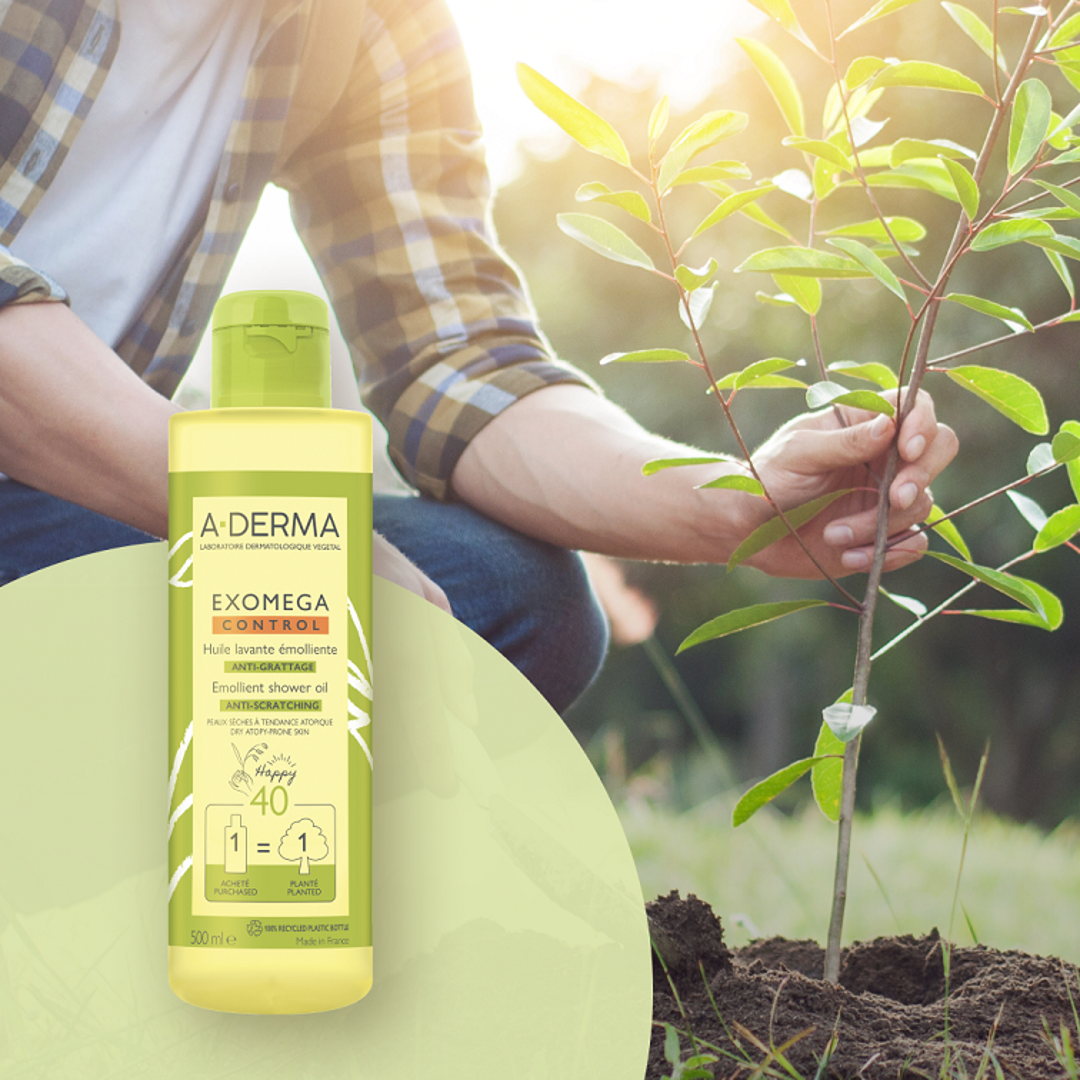 A-DERMA će svoj 40. rođendan obilježiti i uz podršku vjernih potrošača. Kroz travanj će se u ponudi bolje opremljenih ljekarni naći Exomega Control emolijentno ulje Happy 40! 500 ml (limited edition). Za jedno kupljeno slavljeničko ulje, A-DERMA će posaditi jedno stablo**.