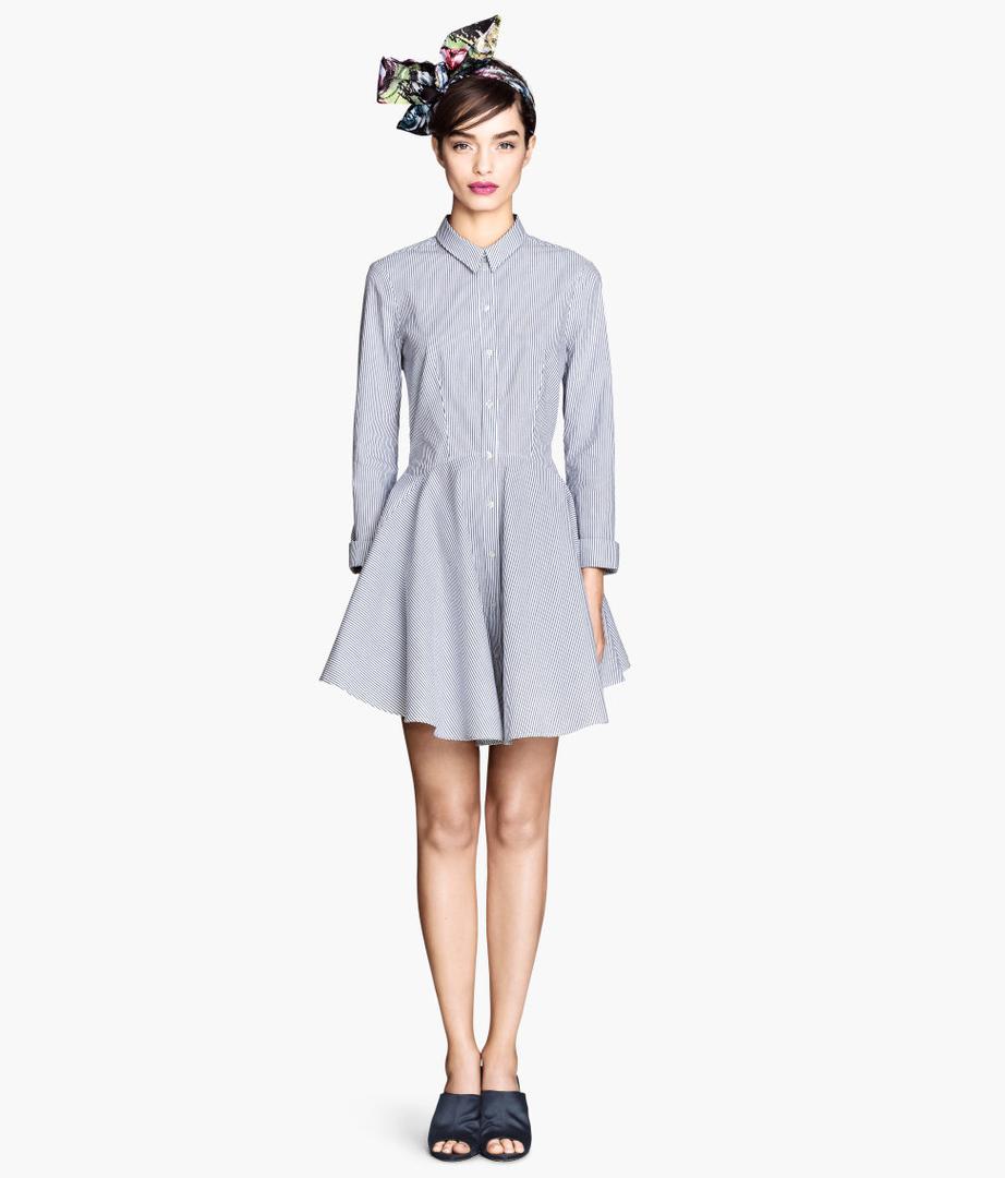 2. Haljina kao košulja lijepo izgleda u nježnim bijelo-plavim prugicama. Materijal je čisti pamuk, 349 kuna.