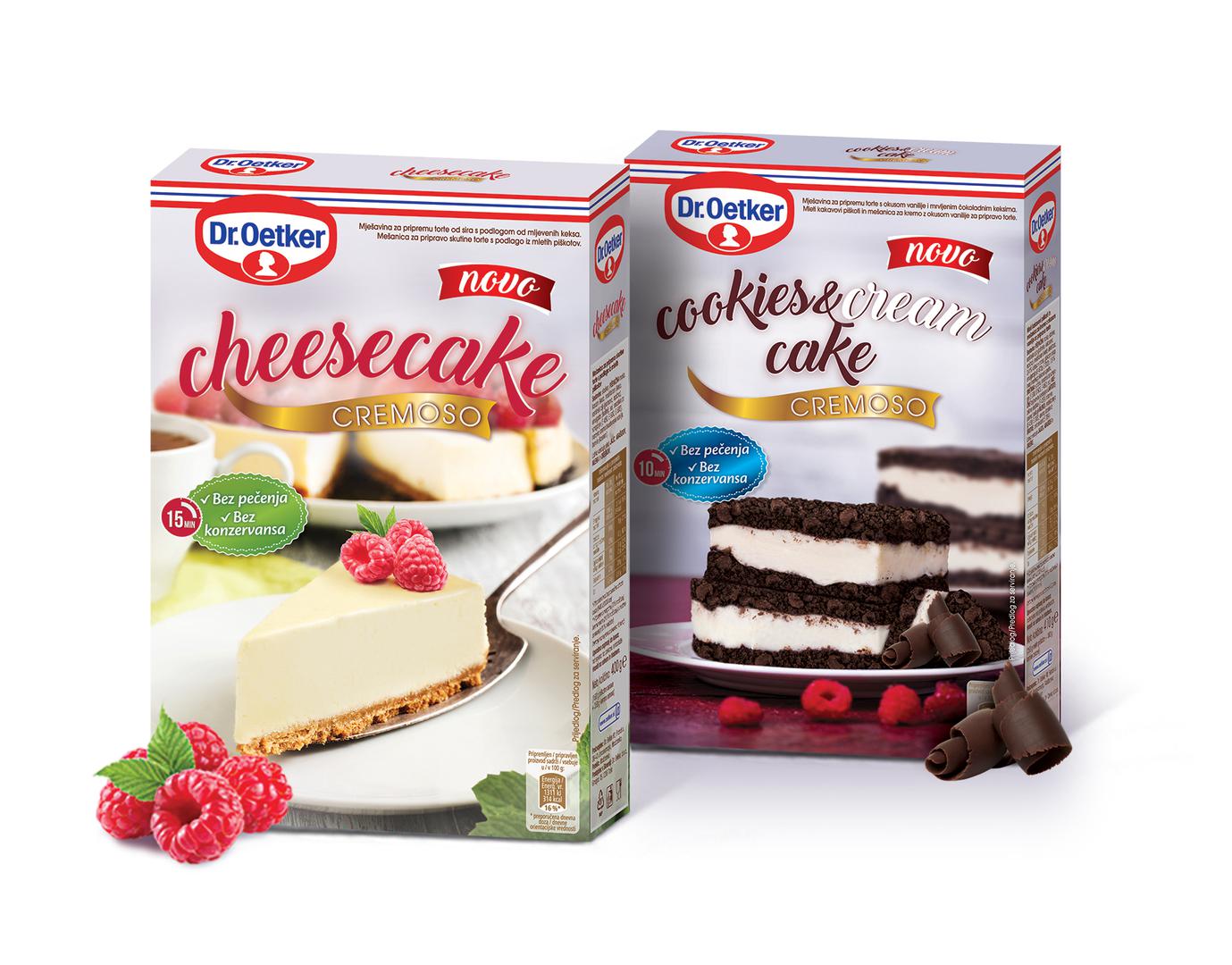 Istinske sladokusce razveselit će novi premium Cremoso asortiman koji dolazi u dva omiljena okusa: Cheesecake i Cookies & Cream. Priprema poznatog američkog klasika, nadaleko omiljene torte od sira nikada nije bila jednostavnija i brža uz Dr. Oetker Cremoso Cheesecake. Pripremiti se može u samo 15 minuta bez pečenja ili na klasičan način s pečenjem. Cremoso Cheesecake ima okus kao iz najbolje slastičarnice, a uz malo mašte i dodatak voća može biti još ukusniji - savršeno će se slagati s malinama, jagodama, šumskim voćem ili preljevom po izboru.