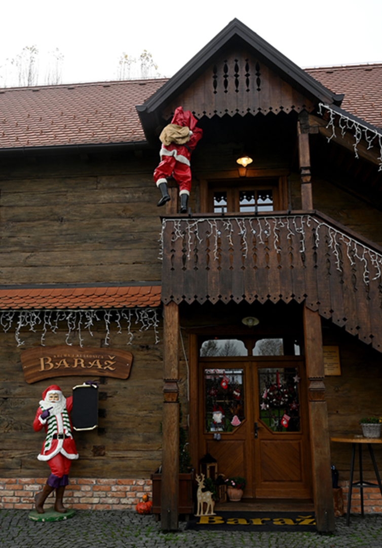 Prava bajkovita zimska idila smještena je svega 20 minuta hoda ili 5 minuta vožnje od Samobora. Na imanju uređenom kao iz bajke, posebno okićenom za ovu zimsku adventsku prigodu dočekati će vas prave domaće gastro delicije i prekrasan etno ambijent. Sve to upotpunjuju i Konjički klub Mirnovec sa ergelom sportskih konja za preponsko jahanje i mali ZOO vrt gdje su se smjestile vjeverice, zečići i patkice, psi koji dođu sa svojim vlasnicima. Odmah na ulazu dočekati će vas kip nasmijanog Djeda Božićnjaka sa svojim Rudolphom, a staza osvjetljena božićnim zvijezdama dovesti do gostionice Baraž. Na samom ulazu u prekrasan etno ambijent, gdje se kod samog uređivanja pazilo sa svaki detalj, još jedan nasmijani Djedica pokazati će vam dnevni meni. Mnogi će već izvana nanjušit će primamljive mirise, dok se drugi djedica šaljivo penje na sam krov gostionice Baraž kao da kroz sam dimnjak hoće ubaciti najbolje poklone. Čim uđete u ovaj topli etno ambijent ugrijat će vas prava domaća atmosfera okupana brojnim primamljivim mirisima iz kuhinje koja je spojila odličnu ponudu domaćih delicija, a neke zapakirala i u nove aranžmane pazeći pri tome da same namirnice ipak ostanu u izvornom domaćem sastavu.