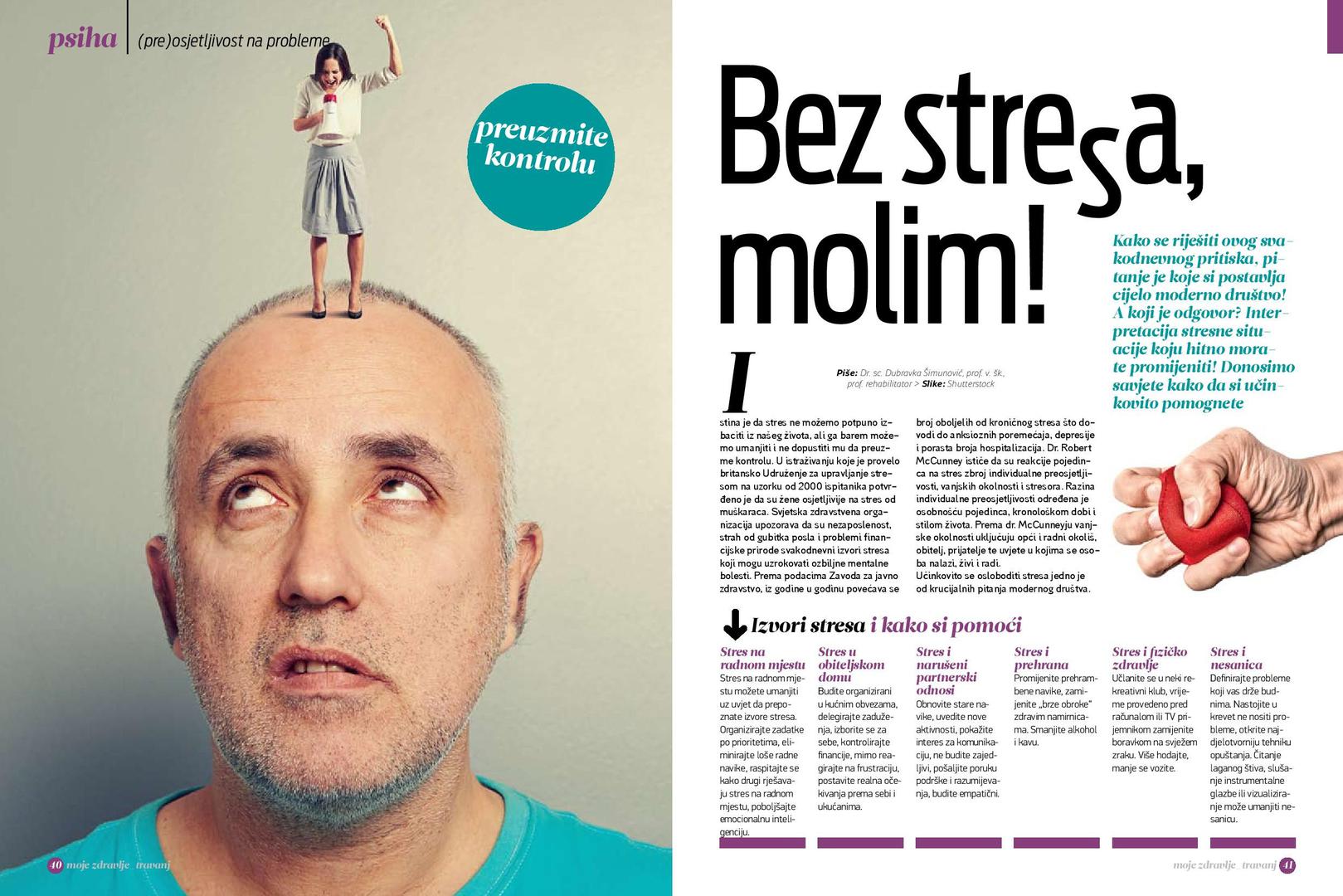 Psihologinja Ljubica Uvodić Vranić savjetuje kako da poradite na vlastitom samopouzdanju, a donosimo i kako se uspješno malim stvarima riješiti stresa. Razgovarali smo i s abdominalnim kirurgom prof. dr. sc. Matom Škegrom, voditeljem tima koji je nedavno obavio jedinstven zahvat – dječaku je drugi put u njegove četiri godine života transplantirana jetra.
