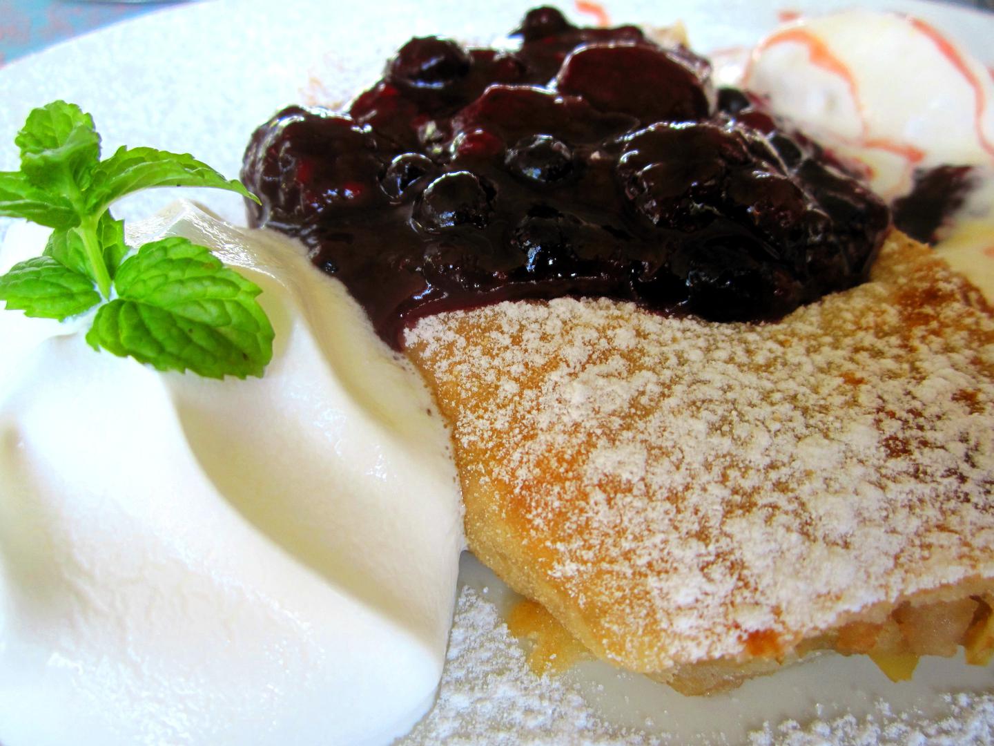 Razvaljajte ½ kg lisnatoga tijesta za gibanicu pa ga punite nadjevom od 1/2 kg ribanih jabuka, 5 dag mljevenih oraha, 10 dag šećera, 2 dag vanilin šećera, 1 žličice cimeta. Smotajte sve u kobasicu, pa izrežite na komade prema dužini i širini posude za pečenje, premažite s 2 umućena žumanca. Pecite u pećnici oko 30 min. Izvadite, malo ohladite pa položite na pladanj za serviranje. Tada pošećerite sitnim šećerom pa izrežite na šire ploške te služite sa sladoledom od vanilije. Prema općem tradicionalnom receptu podrijetlom iz austrougarske kuhinje.