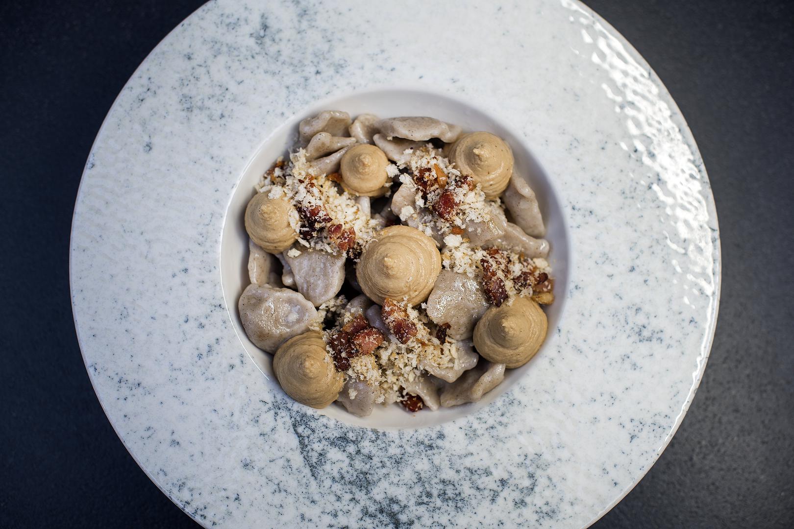 Vole, dodaje, eksperimentirati. Na meniju smo, uz ostalo, naišli i na suvremene trgance, domaće trgance od heljde s kremom od sporo karameliziranog zelja i crumbleom od špeka i kumina.