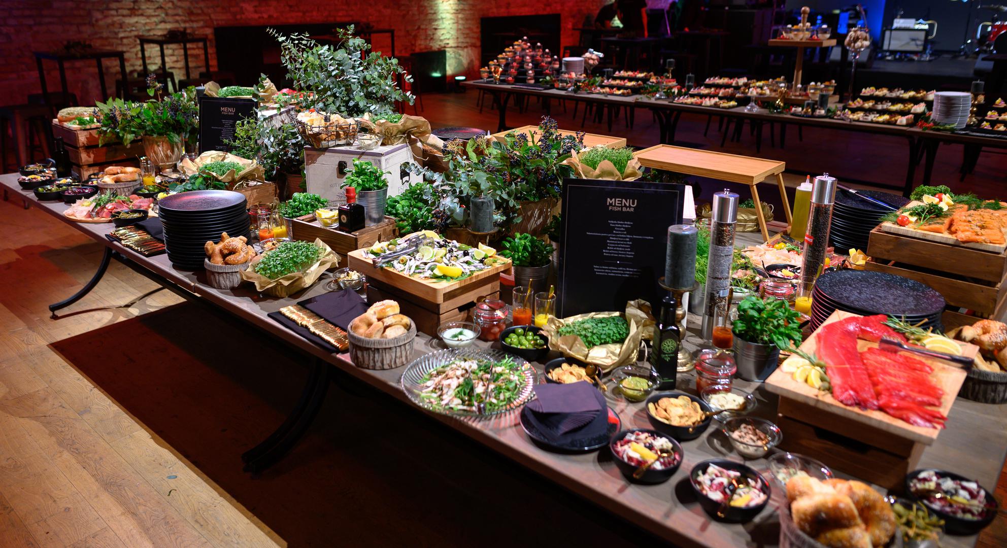 Riblji bar se rijetko susreće na božićnim domjencima, a gosti ga odlično prihvaćaju, pa zašto isti ne biste uvrstili u proslavu. Evo kako je to Zvona catering učinio na svoj način; sabljarka i tuna na hladnom dimu, losos mariniran u cikli i razni drugi morski biseri našli su se na ribljem punktu koji je privukao sve uzvanike.