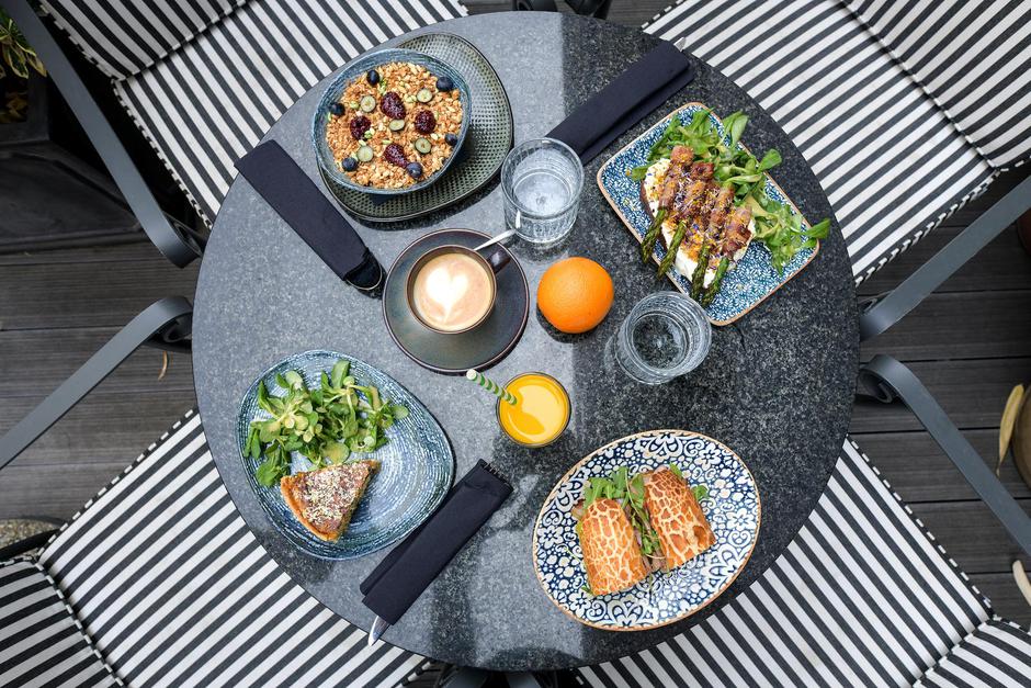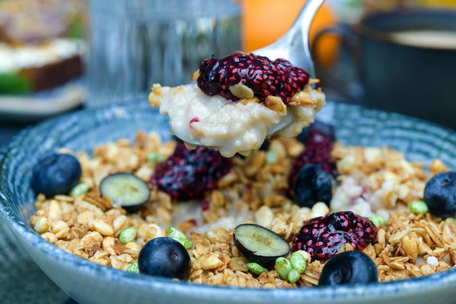 Popularnost im tri godine nakon otvorenja nije nimalo splasnula pa ćete i danas vjerojatno morati neko vrijeme pričekati na slobodan stol. Mi smo uspjeli ugrabiti mjesto na stražnjoj terasi što je zapravo pun pogodak jer ste izolirani od glasnog žamora na glavnoj terasi i možete u miru uživati u "svojih pet minuta". A evo u čemu smo sve uživale u malo bogatijem brunchu koji se jede samo u posebnim prigodama. Kao što u naslovu i stoji, apsolutni favorit nam je ljetna zobena kaša pripremljena na rižinu mlijeku, s borovnicama ukuhanim s limetom, hrskavom granolom i svježim borovnicama po cijeni od 32 kune.
