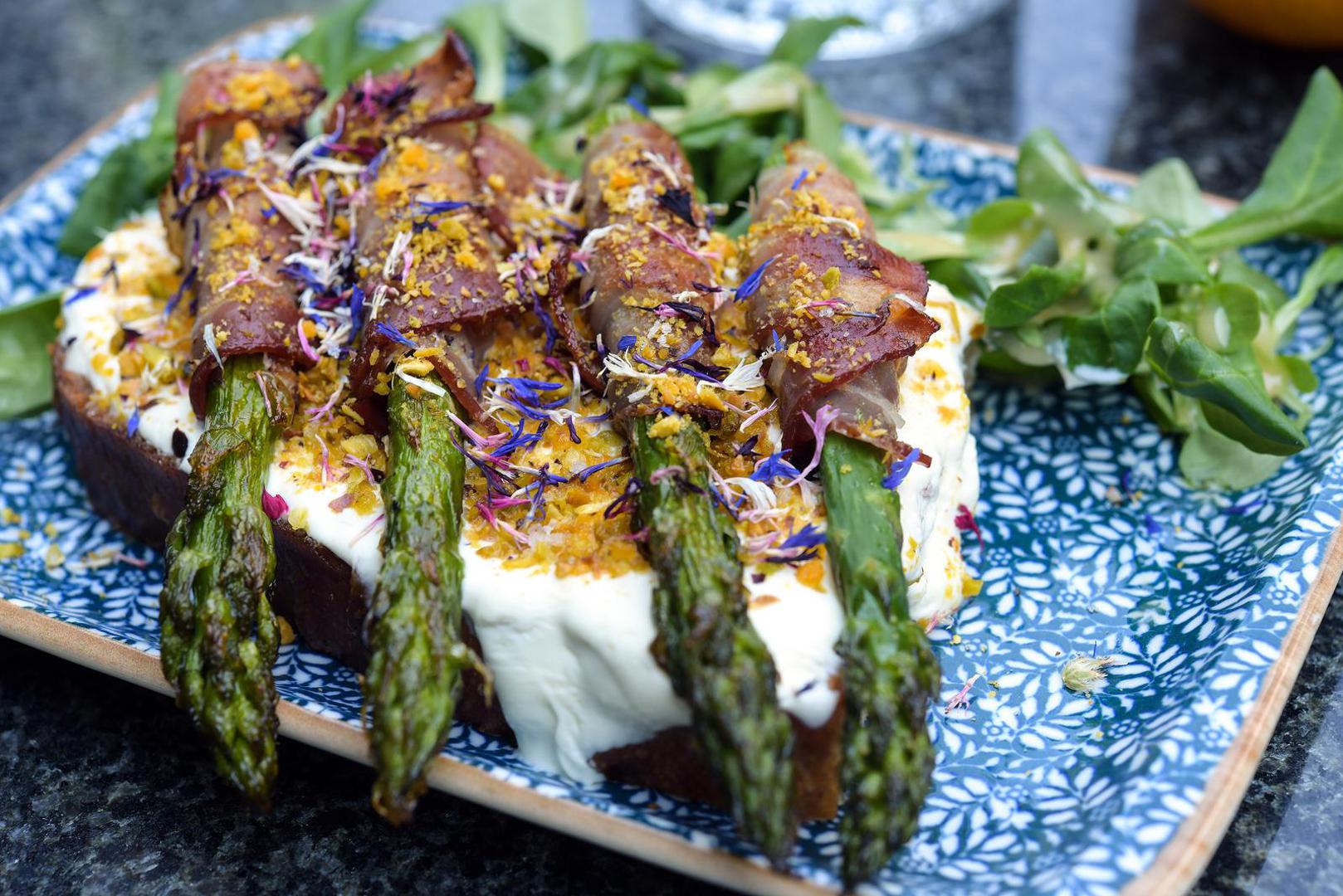 Osim ljetne zobene kaže, odabrali smo još jedno sezonsko jelo s menija – bruschettu sa šparogama zamotanim u slaninu uz koje lijepo ide creme fraische, dehidrirani žumanjak i tostirane pistacije. Cijena ovog jela je 38 kuna.