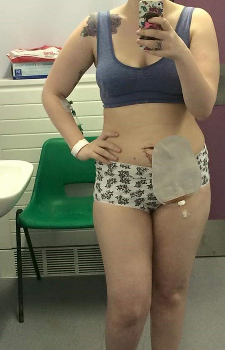 Love, iz Ilkestona u Derbyshireu, nije mogla mokriti zbog rijetkog poremećaja. Nastaje kada se mišić koji kontrolira protok urina u mjehuru ne može opustiti. Liječnici su joj postavili kako bi mokraća iz mjehura mogla istjecati, a nakon toga uklonjen joj je mjehur i postavljena vrećica za stomu zbog prikupljanje mokraće. Zbog stisnutih mišića koji kontroliraju mjehur imala je jake grčeve, osjećala se kao da rađa i više puta bila je hospitalizirana.