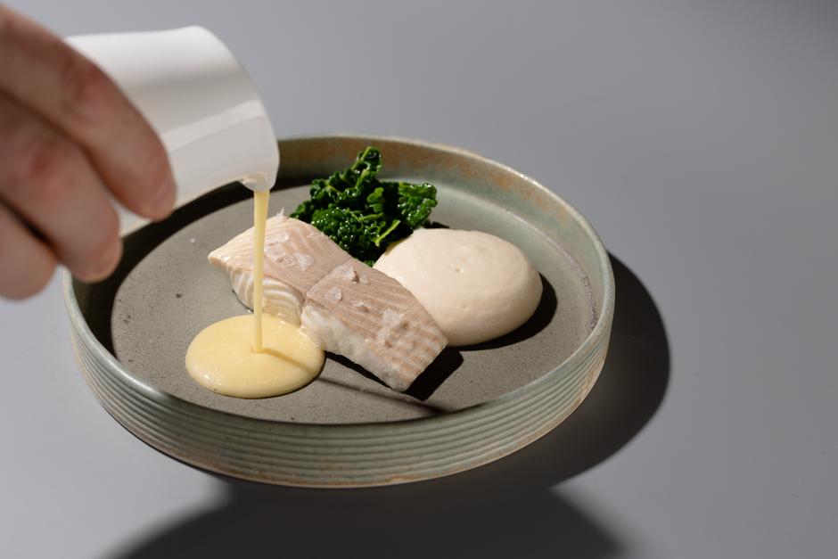 – Koljenicu opečem na žaru, pa je nakon toga hladim te stavljam u vakuum. Zalijem je ovčjim mlijekom, pa se 24 sata kuha sous-vide načinom na 74 stupnja. Ide zatim na hladno, te se to meso lako odvaja, sve procijedi, pa se radi janjeći demiglace. Miješa se s mlijekom i reducira.